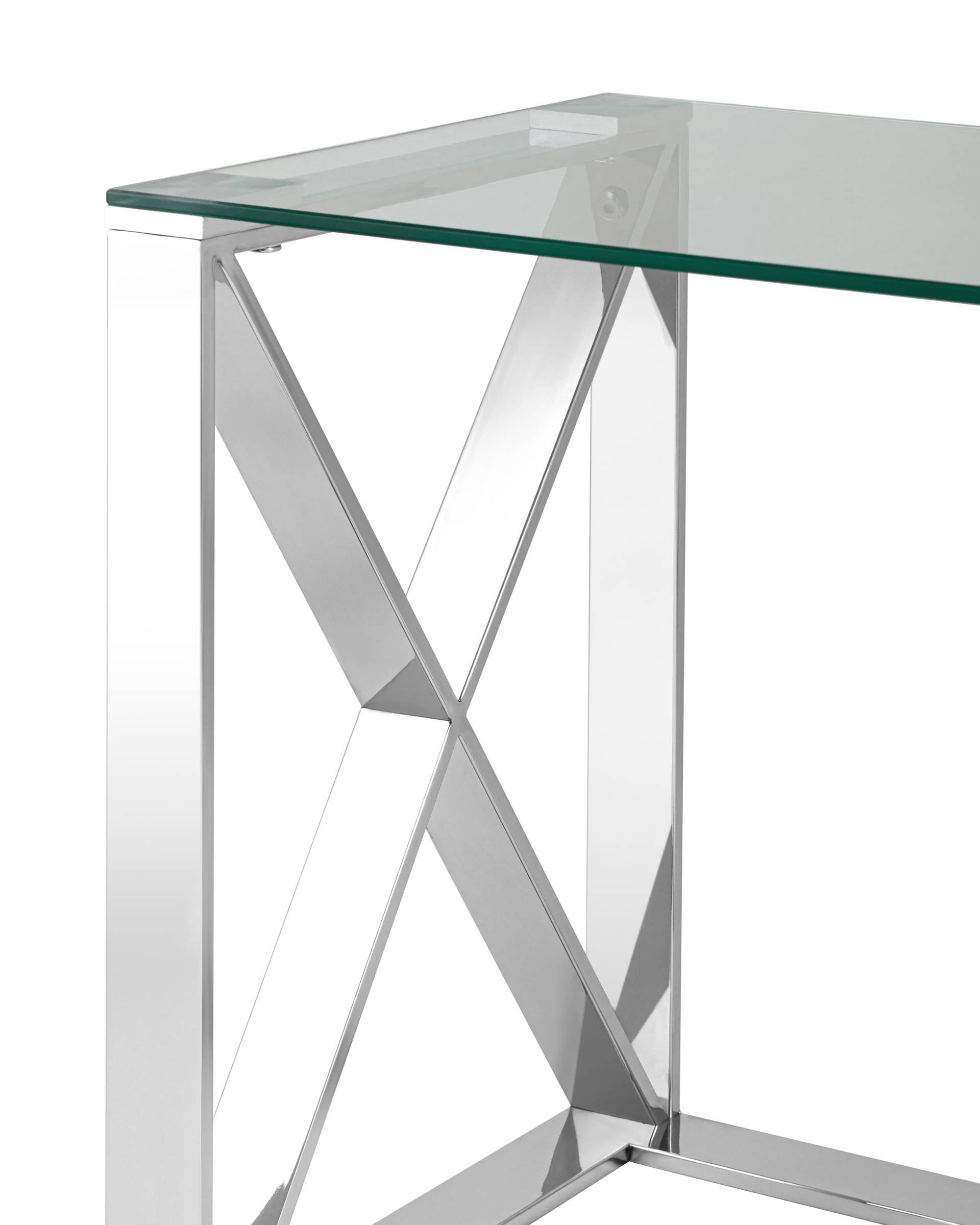 Журнальный стол КРОСС благодаря оригинальной форме станет ярким дизайнерским акцентом в интерьере. Каркас стола изготовлен из нержавеющей стали, столешница - закаленное стекло.