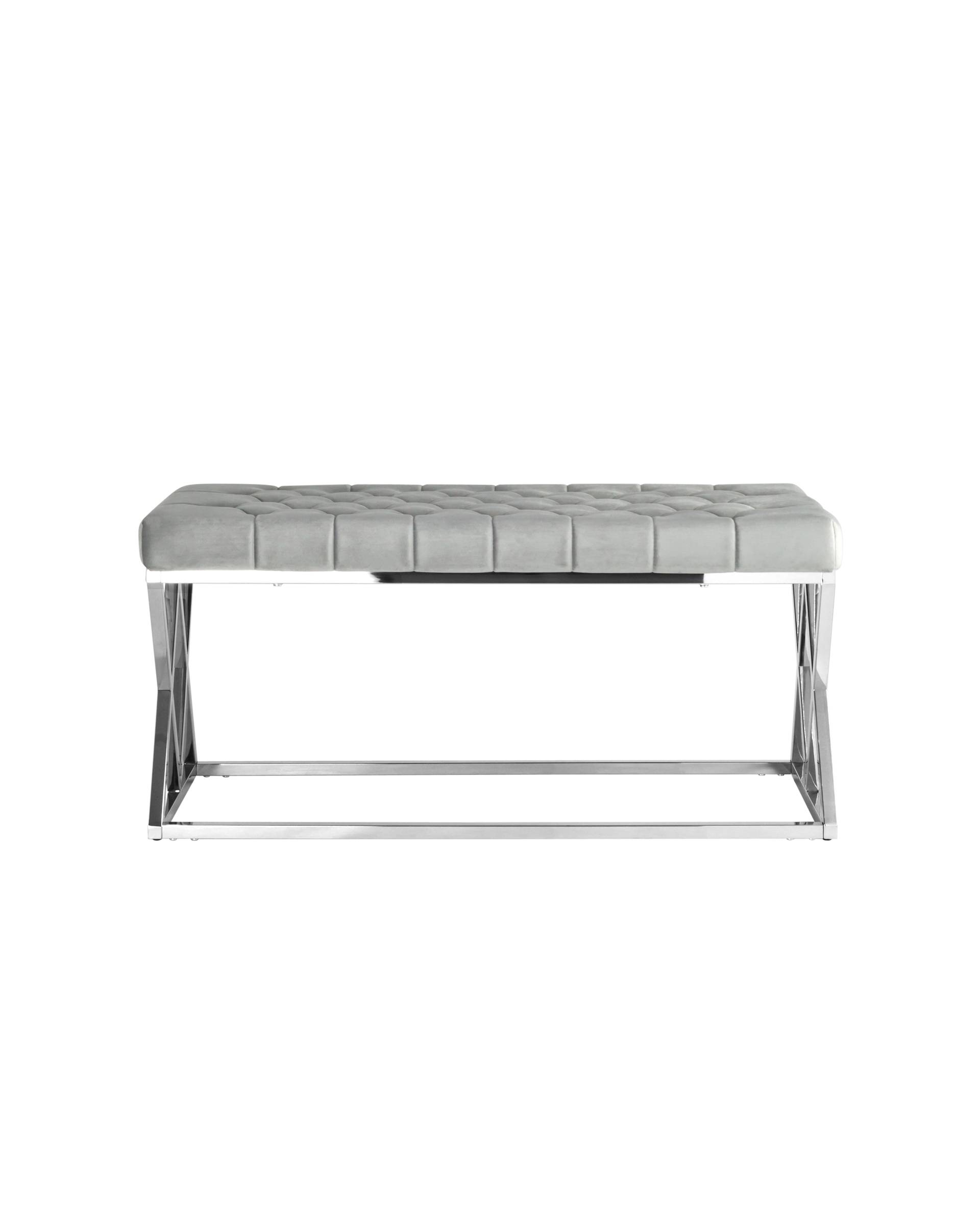 Банкетка выполнена из нержавеющей стали, что делает конструкцию прочной и надежной. Обивка сиденья - велюр. Материал обладает особой прочностью и износоустойчивостью, приятный на ощупь, эластичный и теплый.
