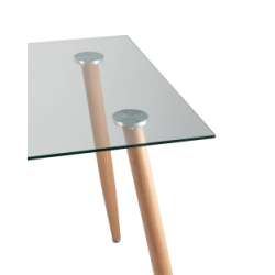 Стол Освальд стеклянный, ножки светлое дерево, размер столешницы 120*80 см