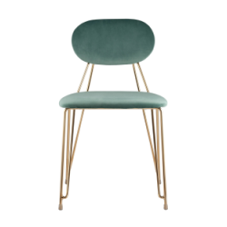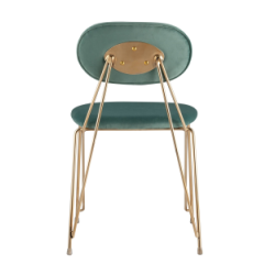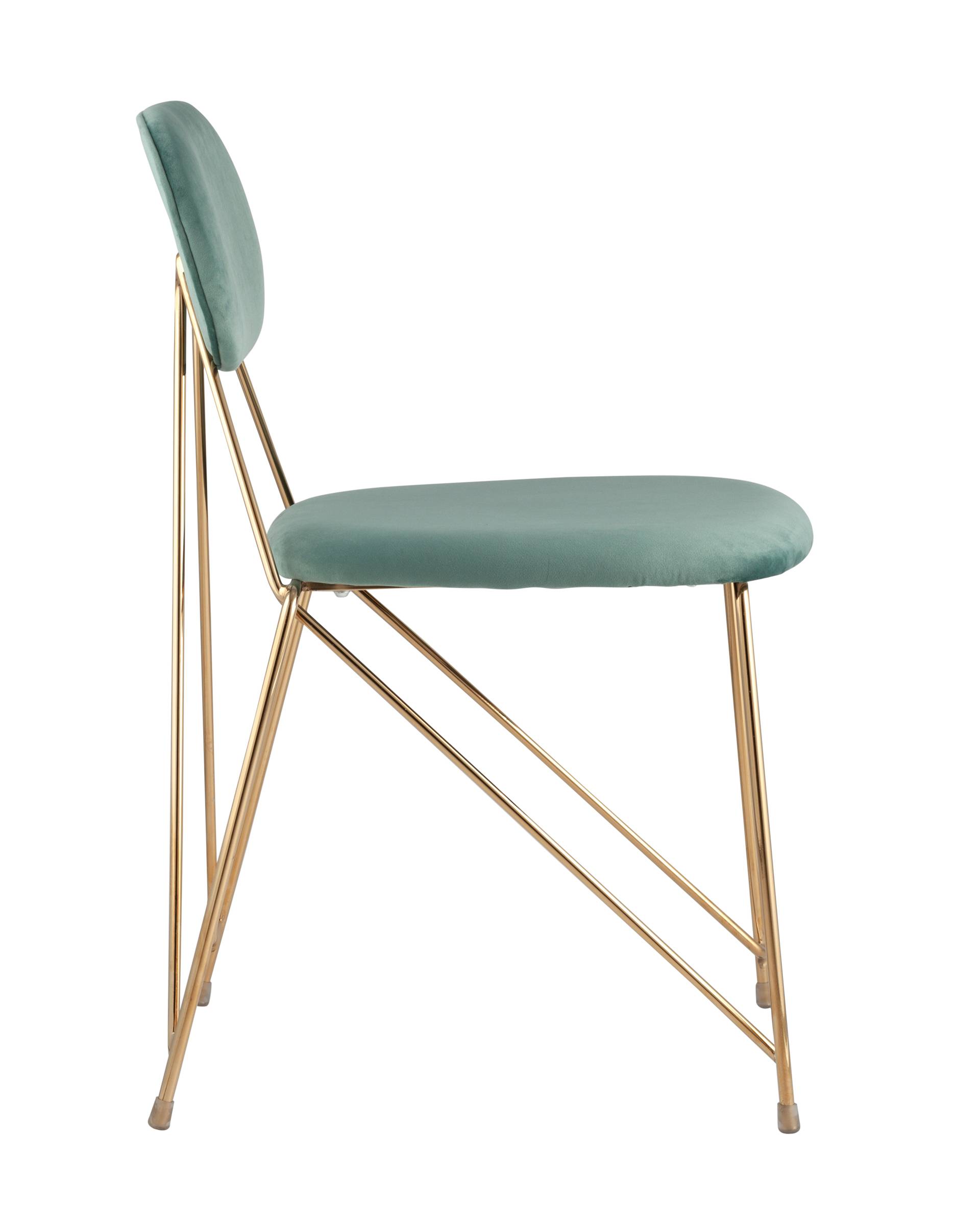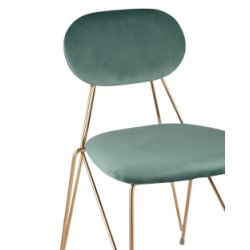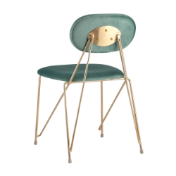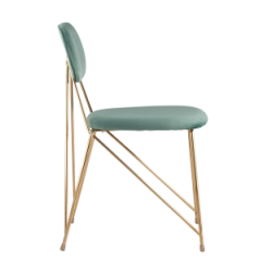 Стильный стул с оригинальной формой ножек и каркаса. В качестве обивки используется мягкий велюр. Украшает модель металлический каркас золотого цвета. Широкое сиденье обеспечивает удобную посадку и уют.