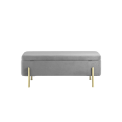 Банкетка Болейн с ящиком велюр серый ножки из металла цвет золото