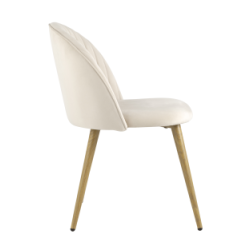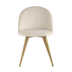 Стул Лион Страйпс кремовый обивка из велюра спинка с вертикальной прострочкой металлический каркас с принтом под натуральное дерево