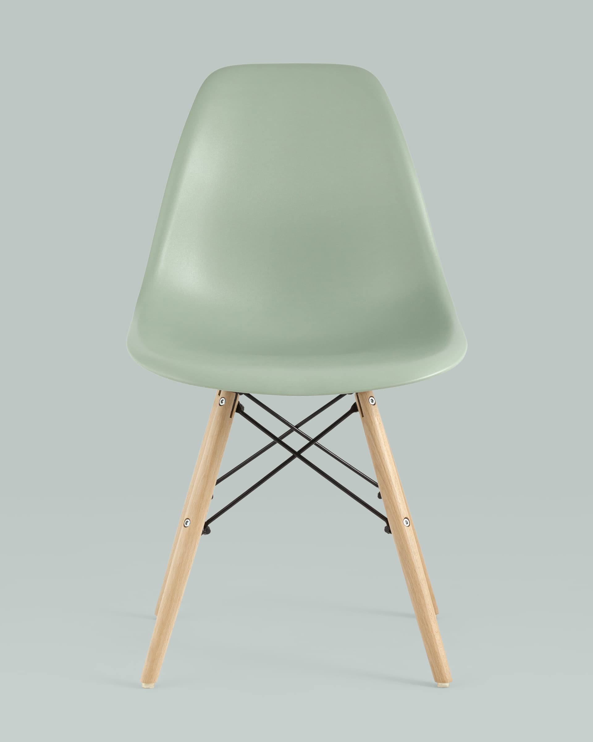 Стул Eames DSW серо-зеленый пластик каркас из металла ножки натуральный массив бука