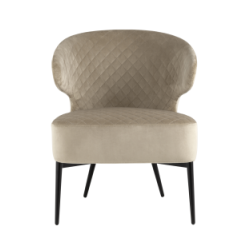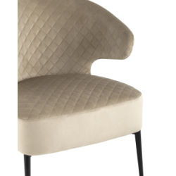 Современное комфортное кресло для отдыха и релакса. Обивка выполнена из велюра - износостойкий и простой в уходе материал. Внутренняя сторона обивки украшена ромбовидной строчкой. Сочетание мягкого сиденья шириной 61 см и эргономичной спинки с оригинальными подлокотниками, всё что необходимо для максимального комфорта. В качестве наполнителя в сиденье используются независимый пружинный блок по центру и мебельный поролон по краям. Независимые пружины обеспечивают ортопедический эффект и удобство, также при такой конструкции дольше сохраняется упругость сиденья и срок службы. Металлические ножки оснащены подпятниками, которые защищают напольные покрытия от царапин и препятствуют скольжению.