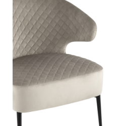 Современное комфортное кресло для отдыха и релакса. Обивка выполнена из велюра - износостойкий и простой в уходе материал. Внутренняя сторона обивки украшена ромбовидной строчкой. Сочетание мягкого сиденья шириной 61 см и эргономичной спинки с оригинальными подлокотниками, всё что необходимо для максимального комфорта. В качестве наполнителя в сиденье используются независимый пружинный блок по центру и мебельный поролон по краям. Независимые пружины обеспечивают ортопедический эффект и удобство, также при такой конструкции дольше сохраняется упругость сиденья и срок службы. Металлические ножки оснащены подпятниками, которые защищают напольные покрытия от царапин и препятствуют скольжению.