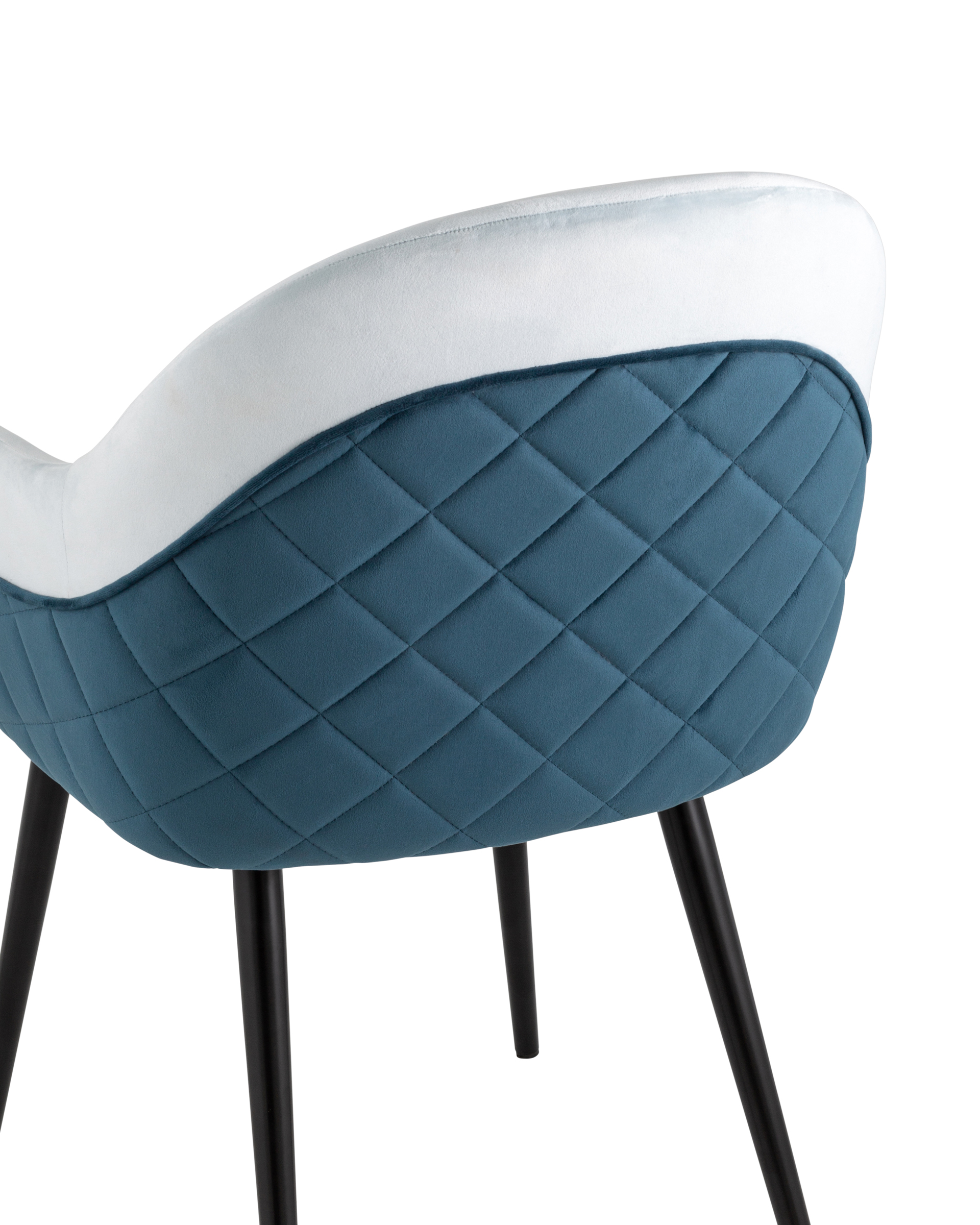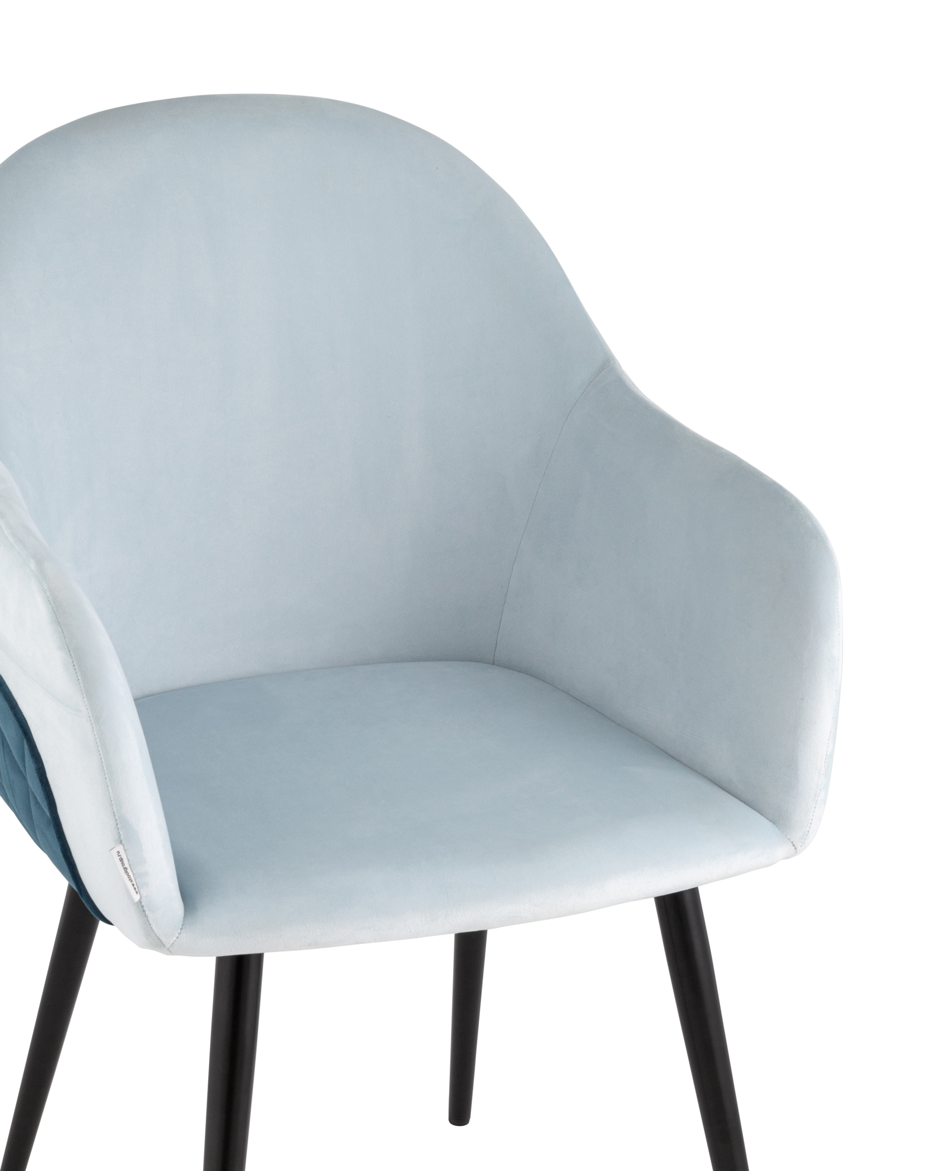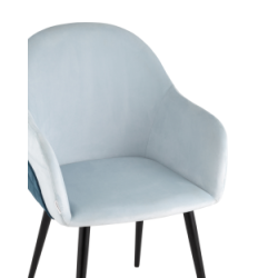 Стул Новел с подлокотниками велюр светло-голубой с синей спинкой ножки черные металл