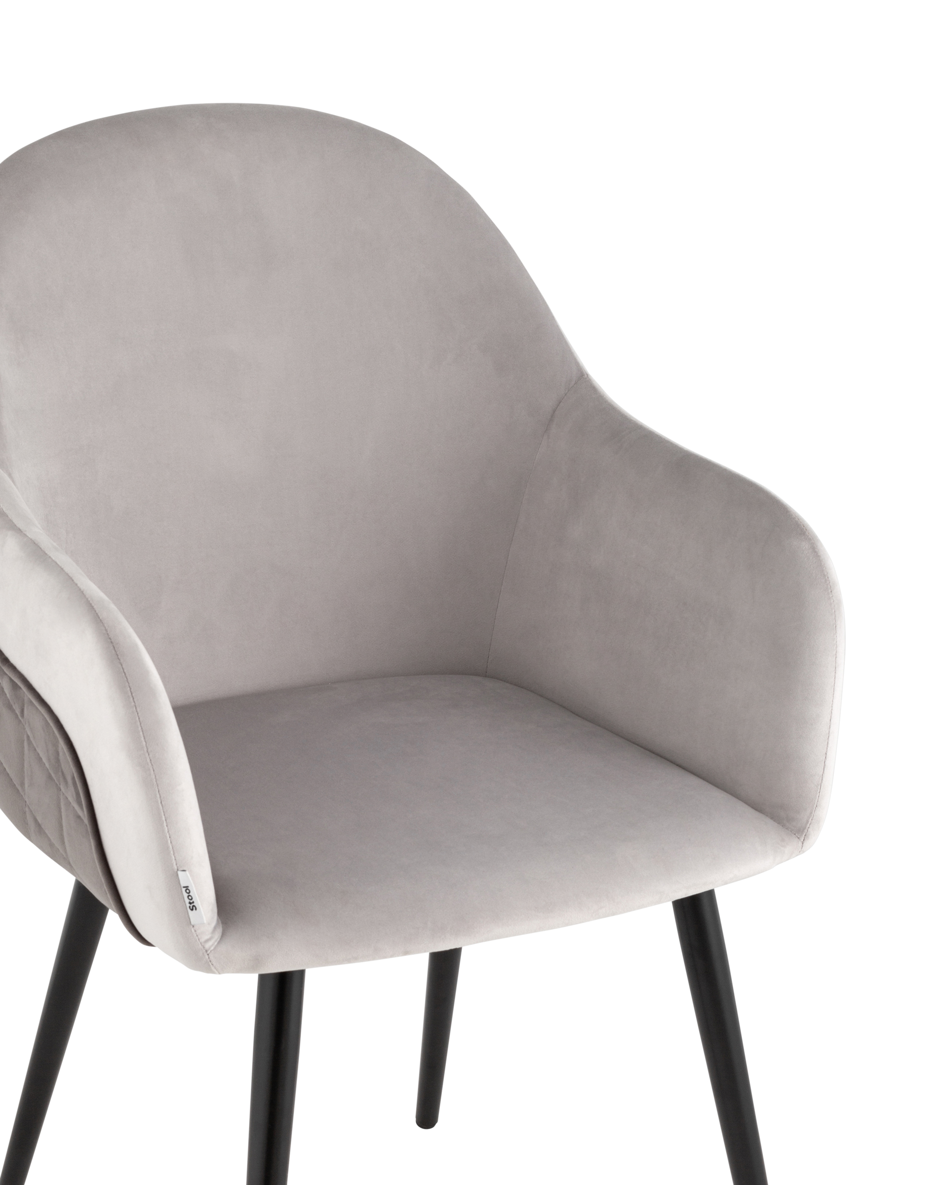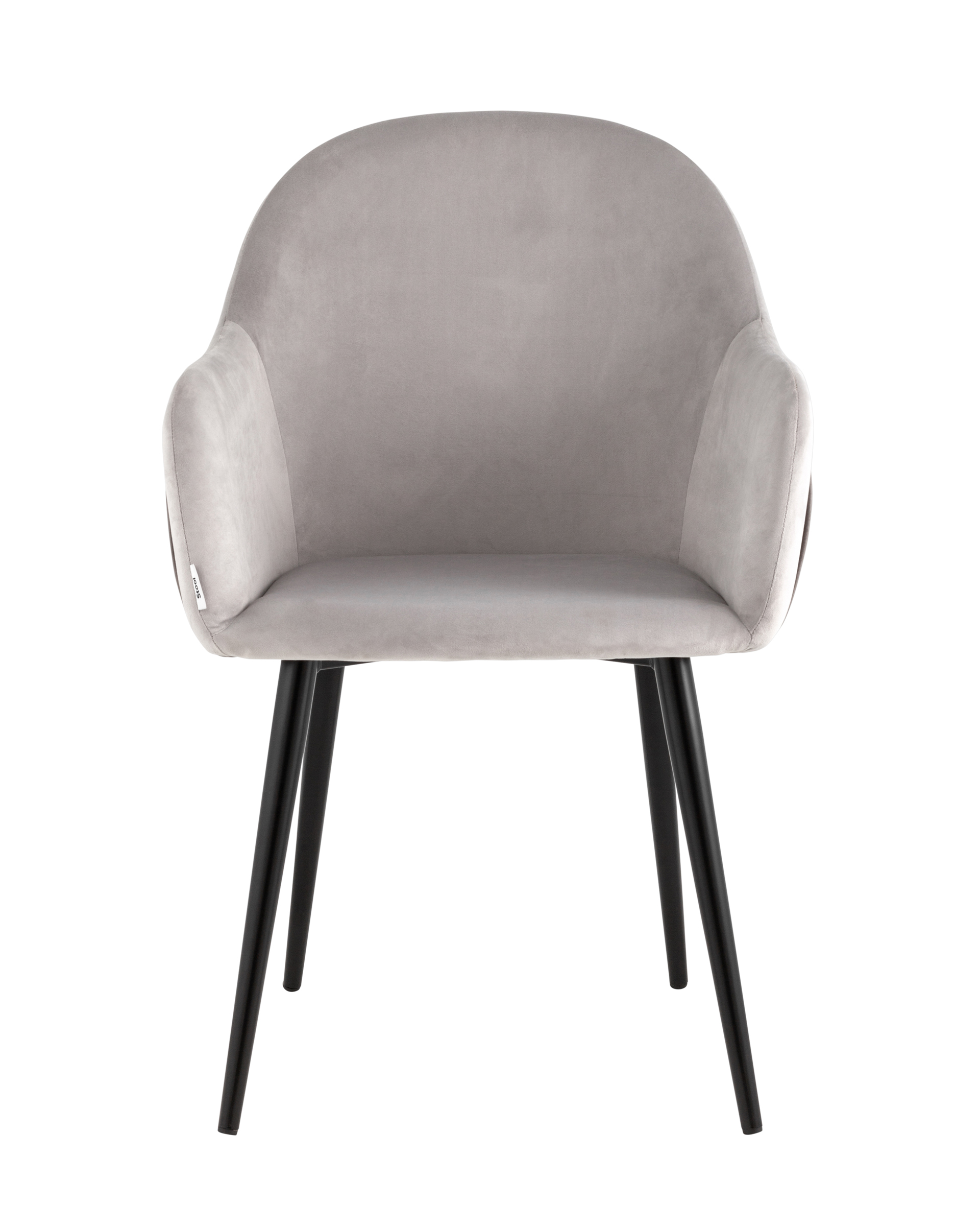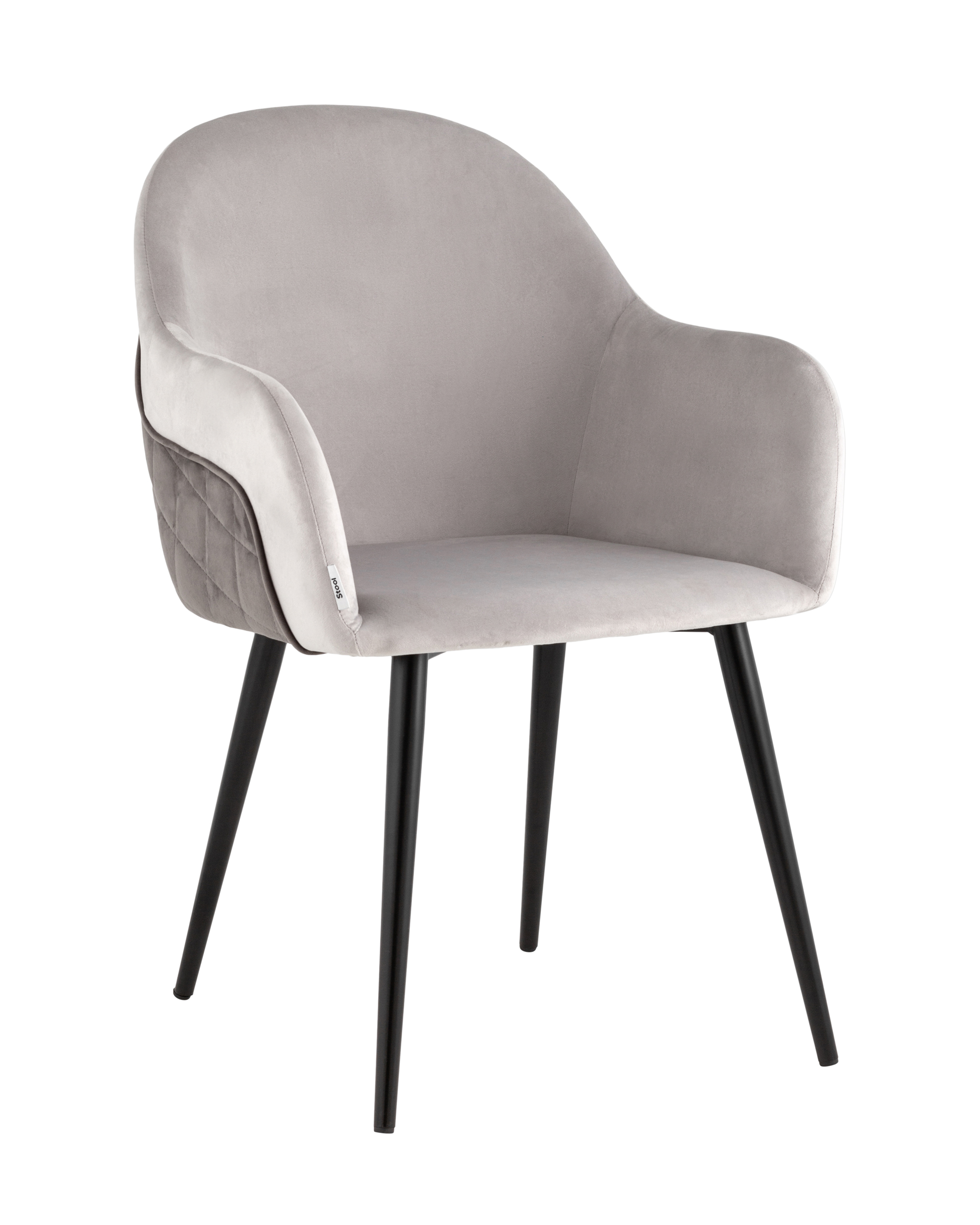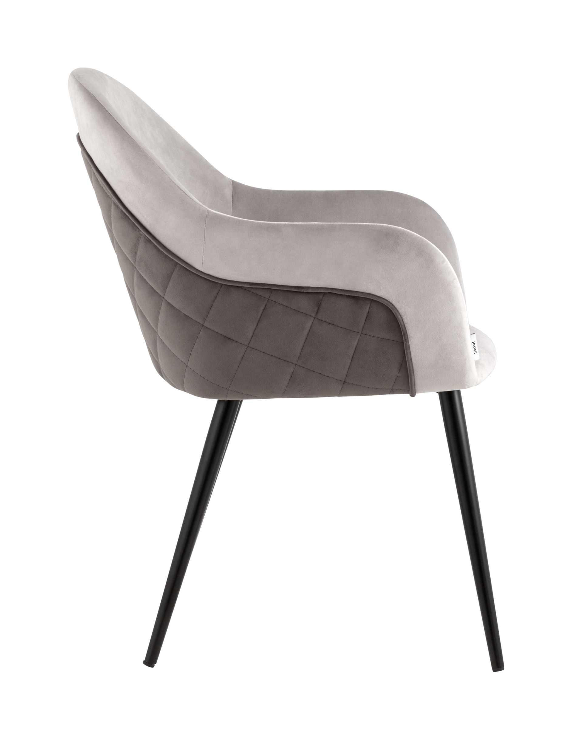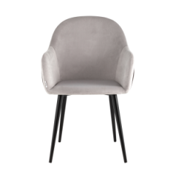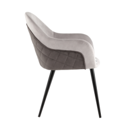 Стул Новел с подлокотниками велюр светло-серый с темно-серой спинкой ножки черные металл