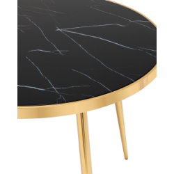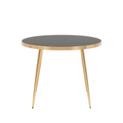 Стол обеденный Гелиос 100х100, стекло черный мрамор, ножки сталь золото