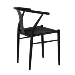Стул обеденный Wishbone Style черный с сиденьем из джута