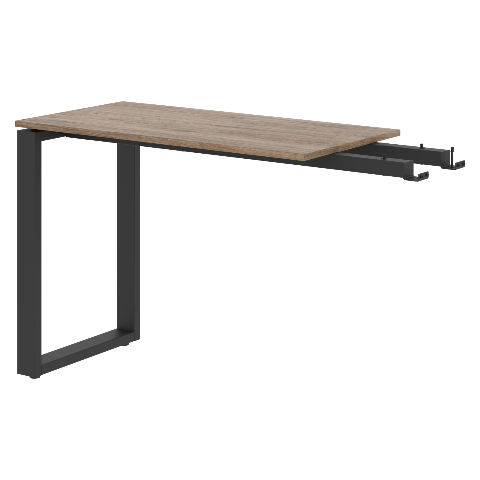 Столешница из ЛДСП т.18мм с кромкой ПВХ по периметру т.2мм. Металлокаркас - опора О-образной формы из профиля трубы 70х30х1,5, цвет - Антрацит, с регулировкой по высоте. Комплектуется двумя металлическими крашенными траверсами из профиля трубы 40х25х2мм., которые соединяются слева или справа с траверсами основного стола руководителя.