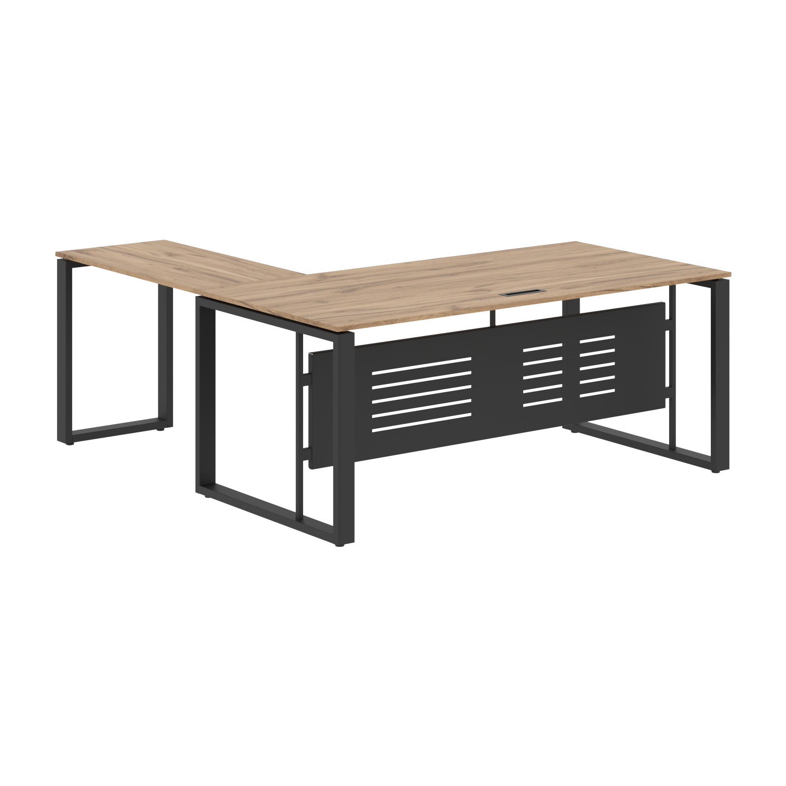 Стол комплектуется короткой фронтальной панелью из металлического листа толщиной 1,5мм с перфорацией, h=400мм.