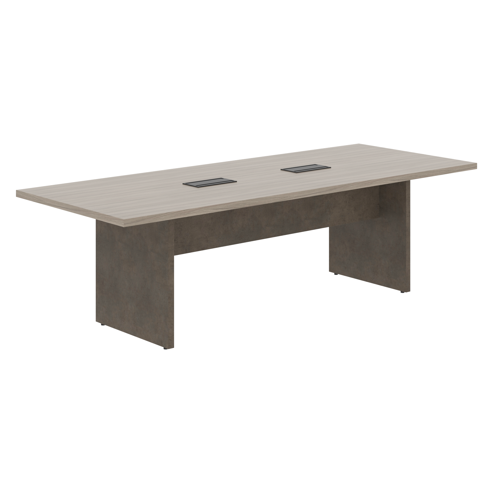 Столешница и опоры из ЛДСП т.38мм с кромкой ПВХ т.2мм по периметру, с прямоугольной заглушкой черного цвета, которая расположена по центру столешницы и имеет откидные крышки с 2-х сторон и защитные щеточки. Опоры регулируемые с диапазоном регулировки высоты 12 мм.