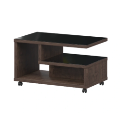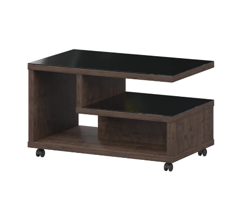 Журнальный сто - ЛДСП 32 мм, накладки из черного стекла «Лакобель» с еврокромкой