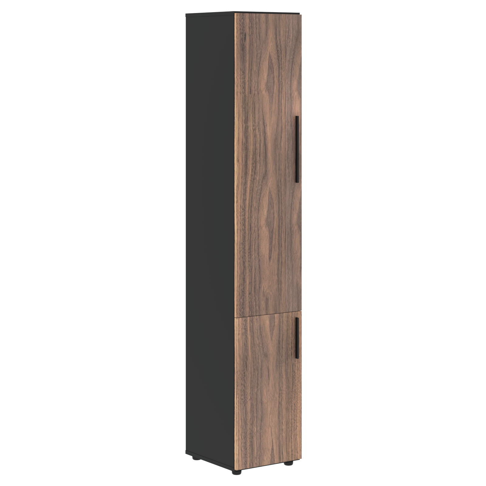 Двери низкие матовые из ДСП т.19мм, с двух сторон облицовываны шпоном т.0,6мм с покрытием матовым лаком, с кромками в шпоне т.0,6мм по периметру. Каждая дверь комплектуется двумя петлями: одна с доводчиком, одна без доводчика. Двери необходимо доукомплектовывать ручками VRS 8170 320/330.