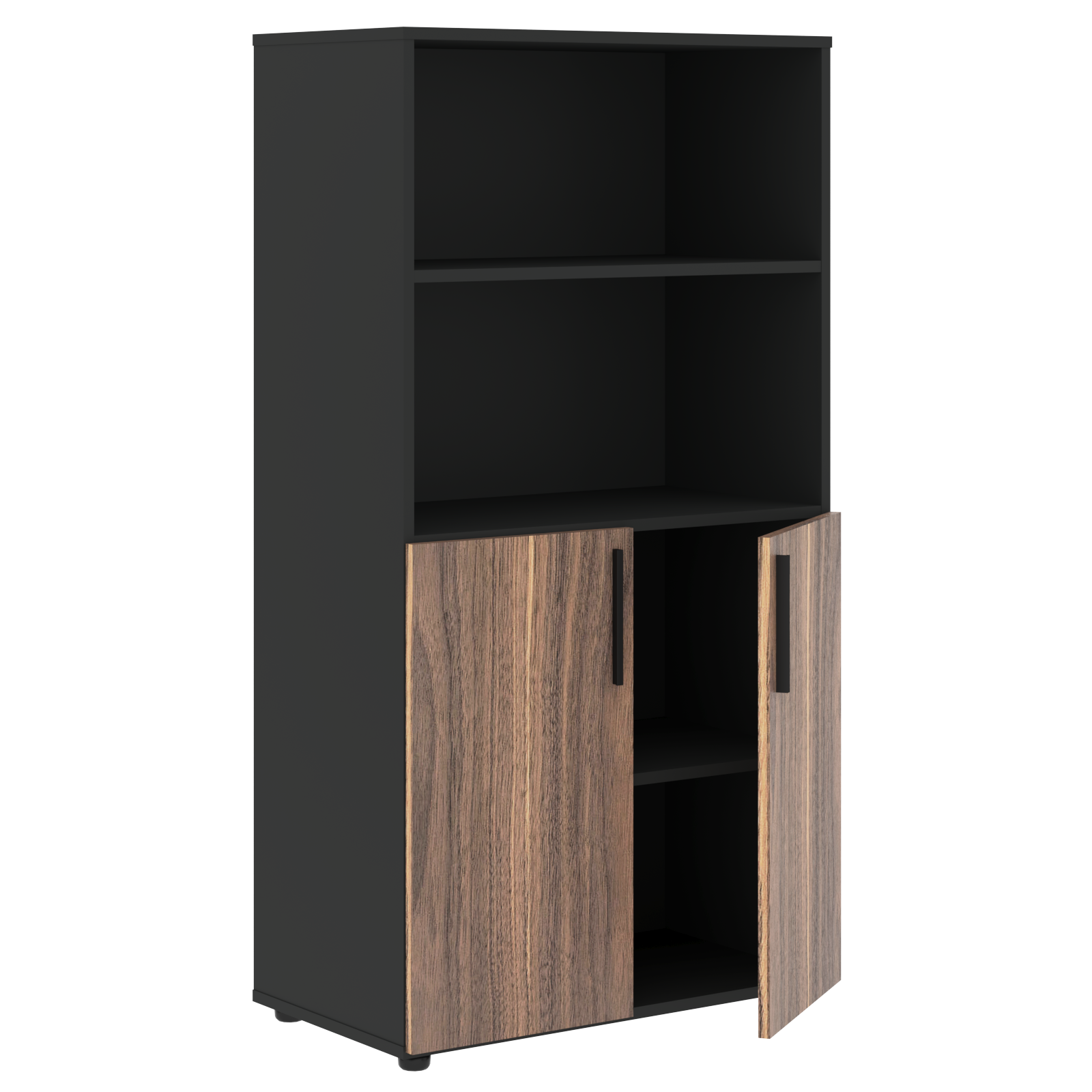 Каркас шкафов и задняя стенка из двухстороннего МДФ т.18мм с покрытием пленкой PET(ПЭТ) и кромками ПВХ т.1 и 0,45мм. Каркасы комплектуются полками из двухстороннего МДФ т.18мм с покрытием пленкой PET(ПЭТ) и кромками ПВХ т.1 и 0,45мм и регулируемыми опорами H=27мм