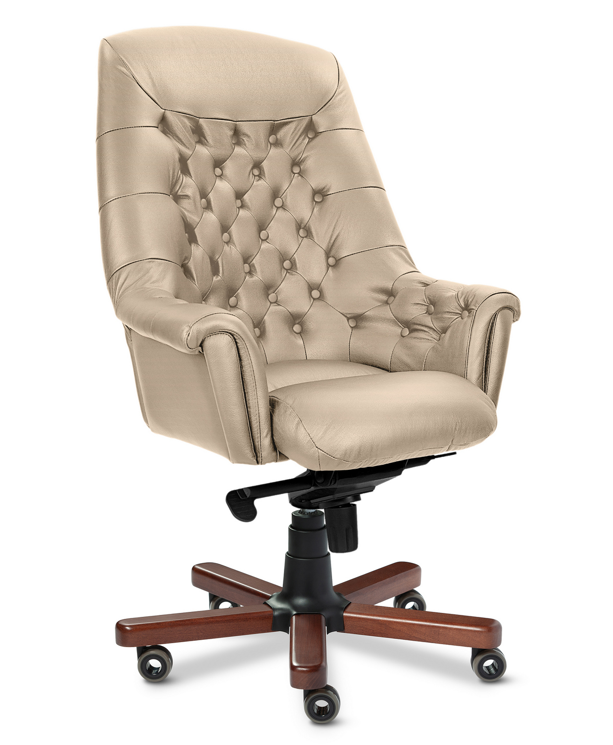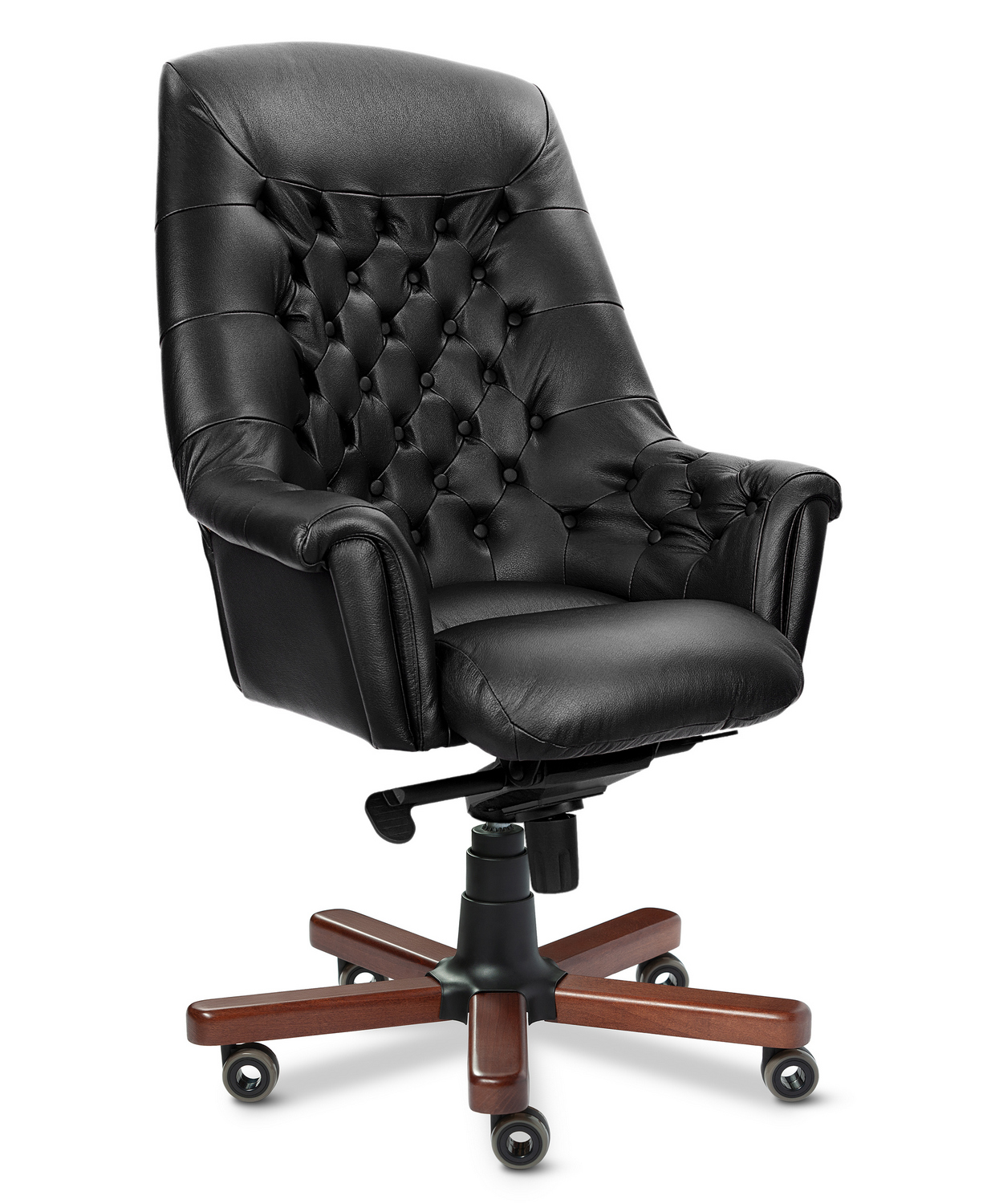 Кресло руководителя Zurich A - эксклюзивная и престижная модель в категории бизнес-премиум, отлично зарекомендовавшая себя в эксплуатации. Выполняется с высокой спинкой и деревянными накладками на крестовине. Спинка, плавно переходящая в подлокотники, образует чашеобразную эргономичную форму. Кресло изготовлено на едином сборном каркасе, отделано утяжками и пуговицами.