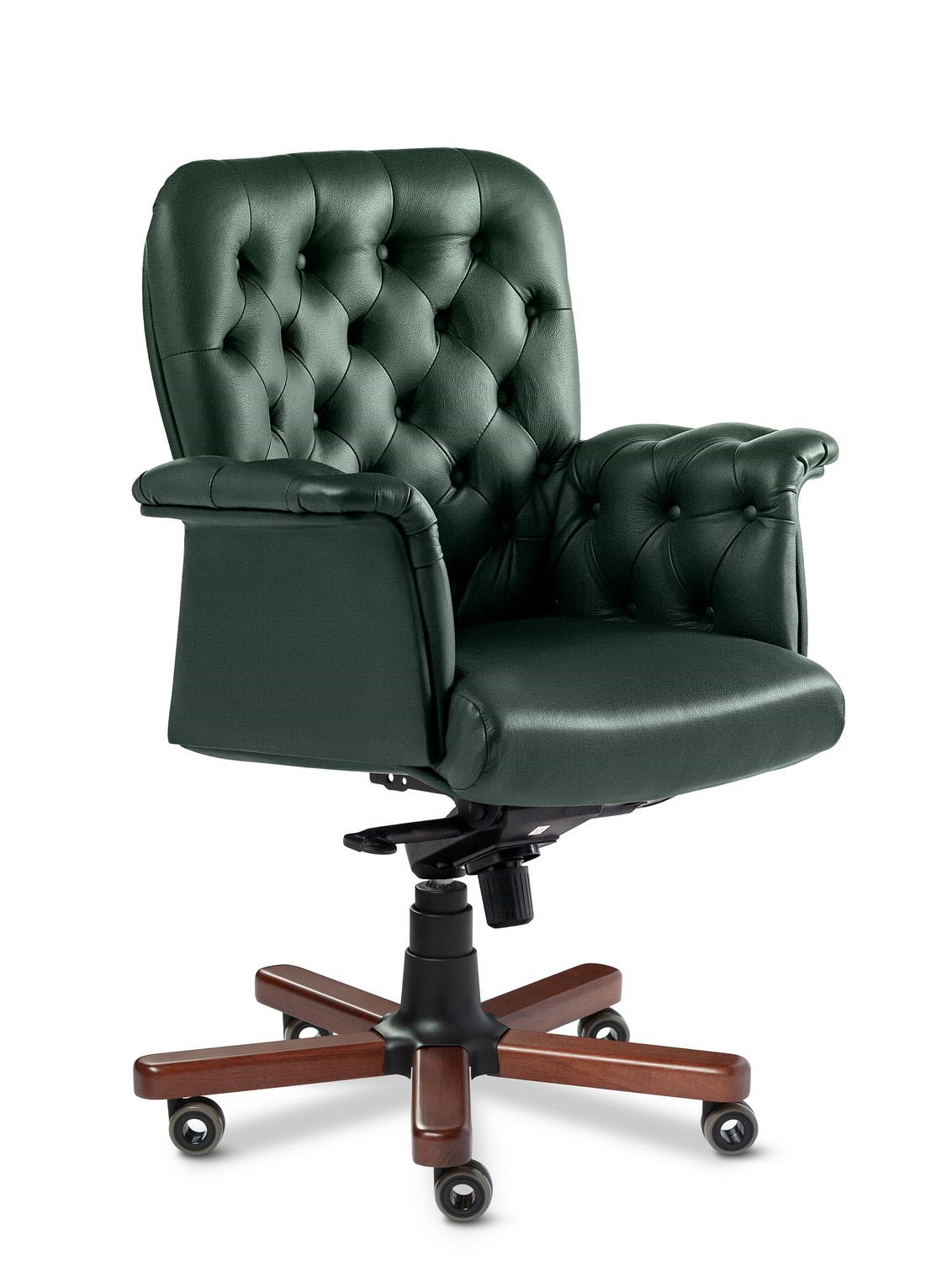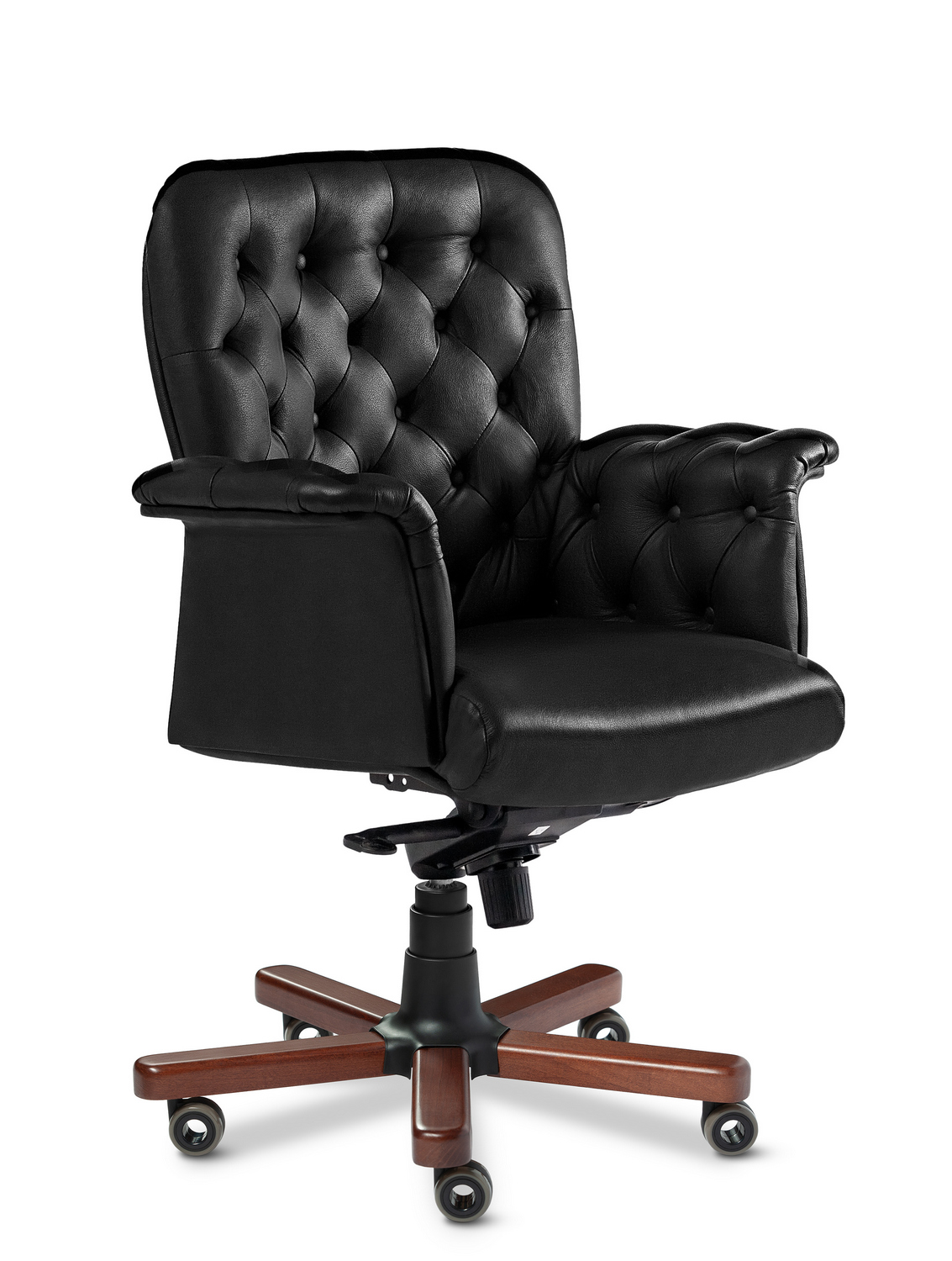 Кресло руководителя Messina В - эксклюзивная и престижная модель в категории бизнес-премиум. Выполняется с высокой спинкой, с мягкими кожанными подлокотниками на подвижной роликовой крестовине, облаченной в тонированные деревянные накладки из массива бука. Спинка и подлокотники имеют декоративные утяжки с пуговицами. Кресло очень удобное, отлично вписывается в любой интерьер как домашнего, так и офисного кабинета.