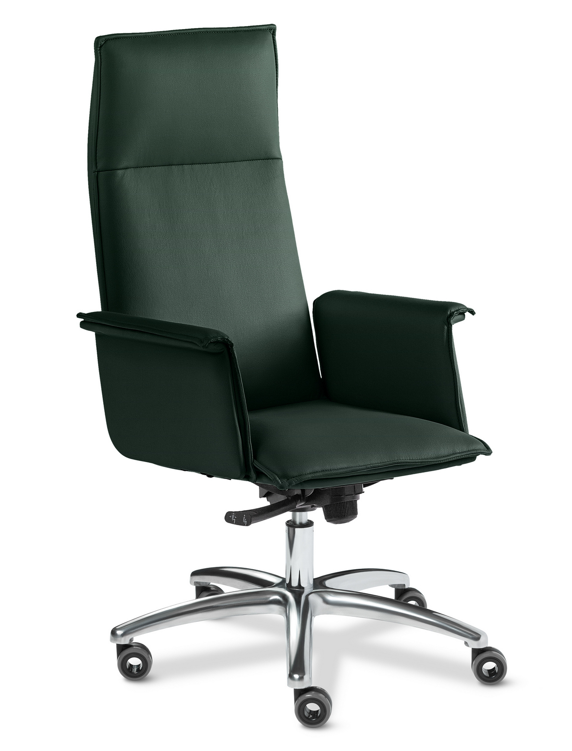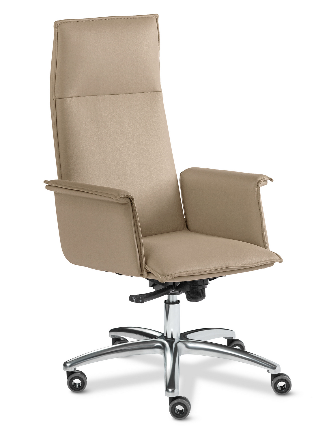 Кресла модели Epsilon - это прекрасный выбор для наполнения офисных пространств, сочетают в себе классическую форму, практичность и приятную эргономику. Кресло руководителя Epsilon А - выполняется с высокой спинкой, на литой крестовине из полированного алюминия. Дизайн кресла лаконичен, сочетает в себе строгость и элегантность.