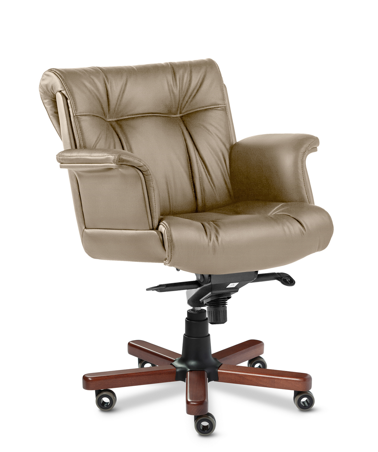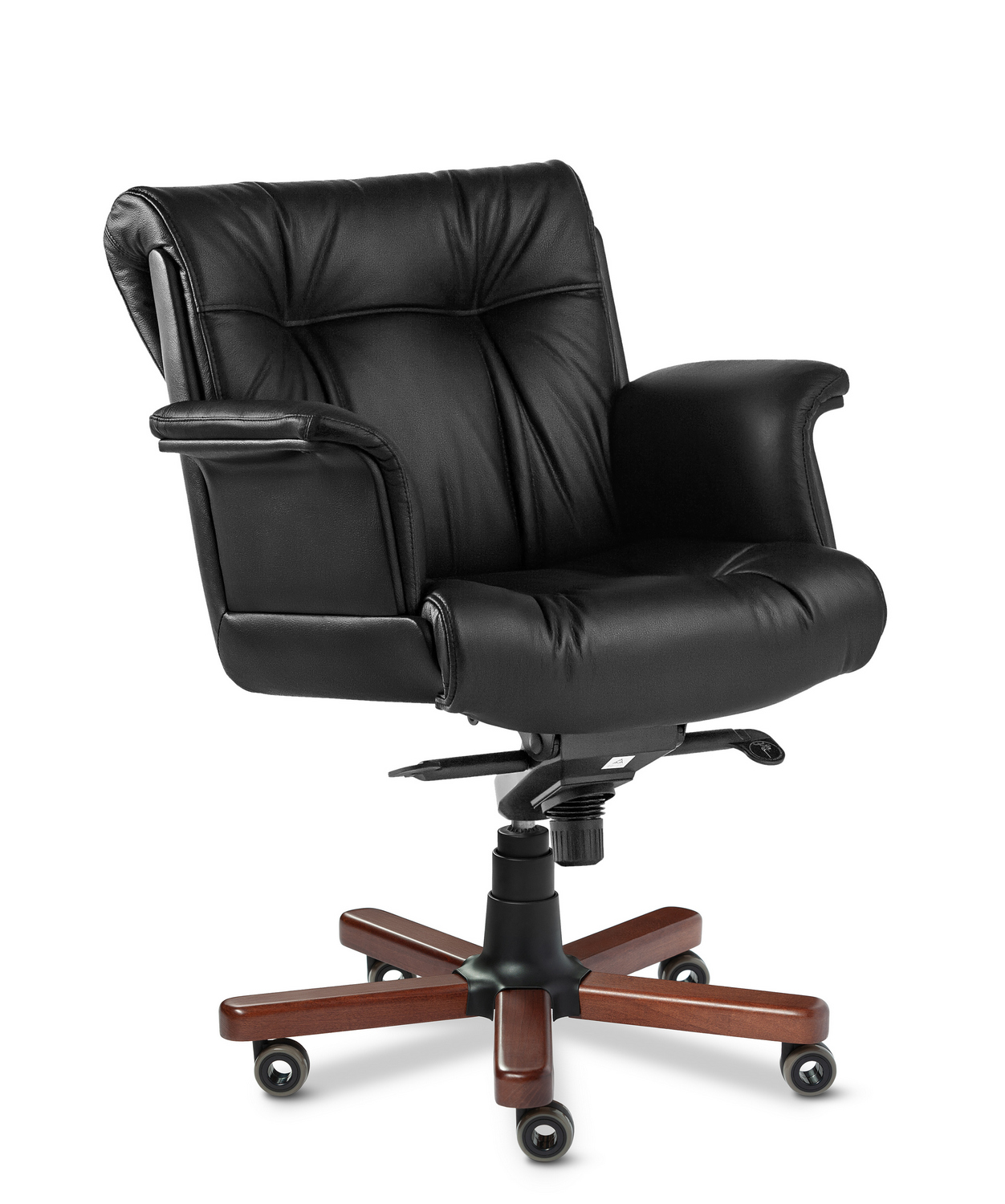 Кресло руководителя Paris Luxe B - наиболее престижная, проверенная временем модель категории "Бизнес", для наполнения кабинетов руководящего звена. Выполняется с низкой спинкой, "Г"-образными мягкими подлокотниками и деревянными накладками на крестовине. Спинка и сидение уложены в фанерованный ковш, с внешней стороны обтянутый высококачественным кожзаменителем. Дизайн кресла сочетает в себе эргономичность и функциональность.