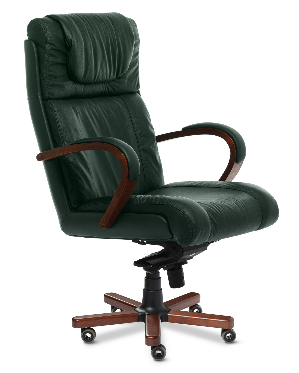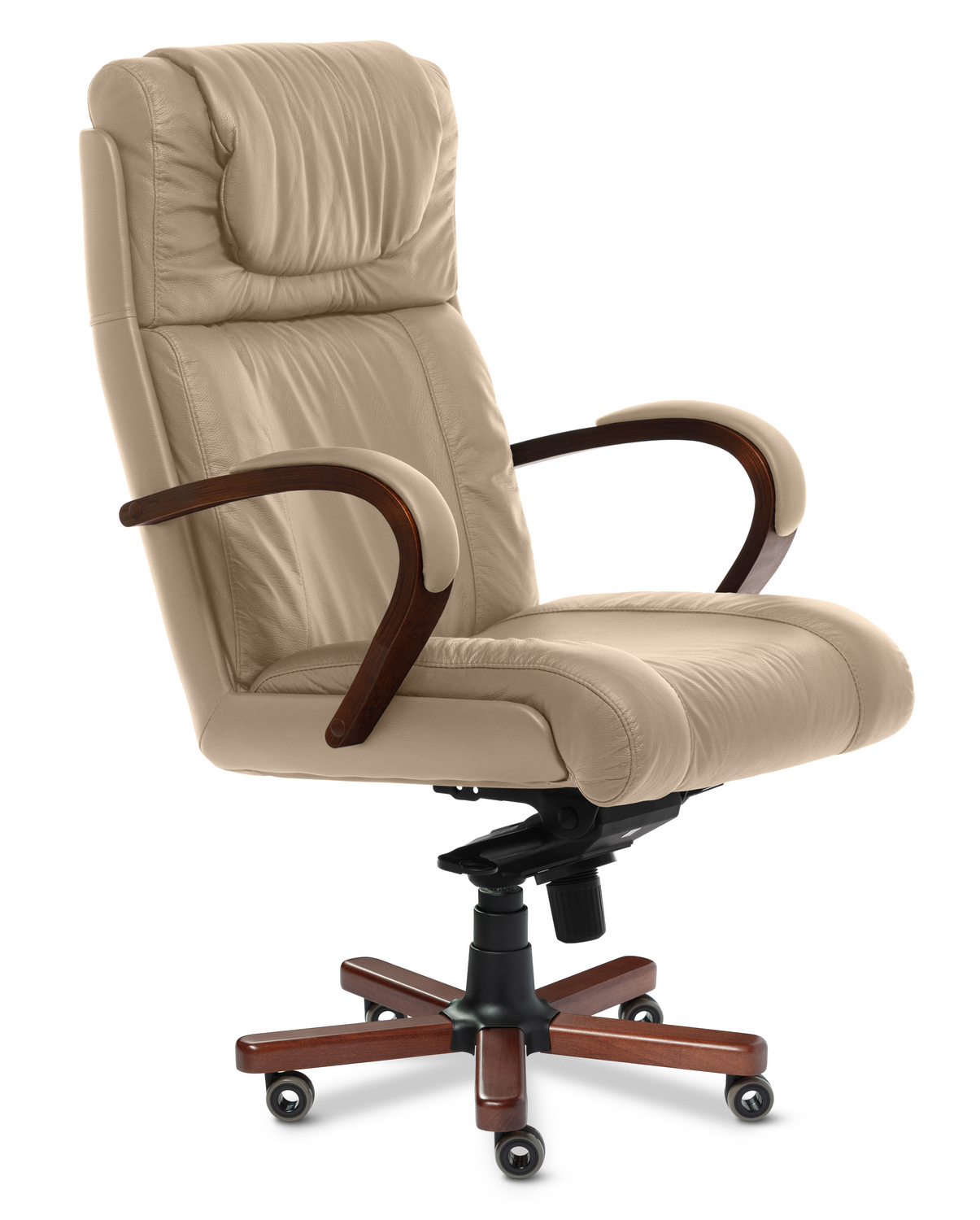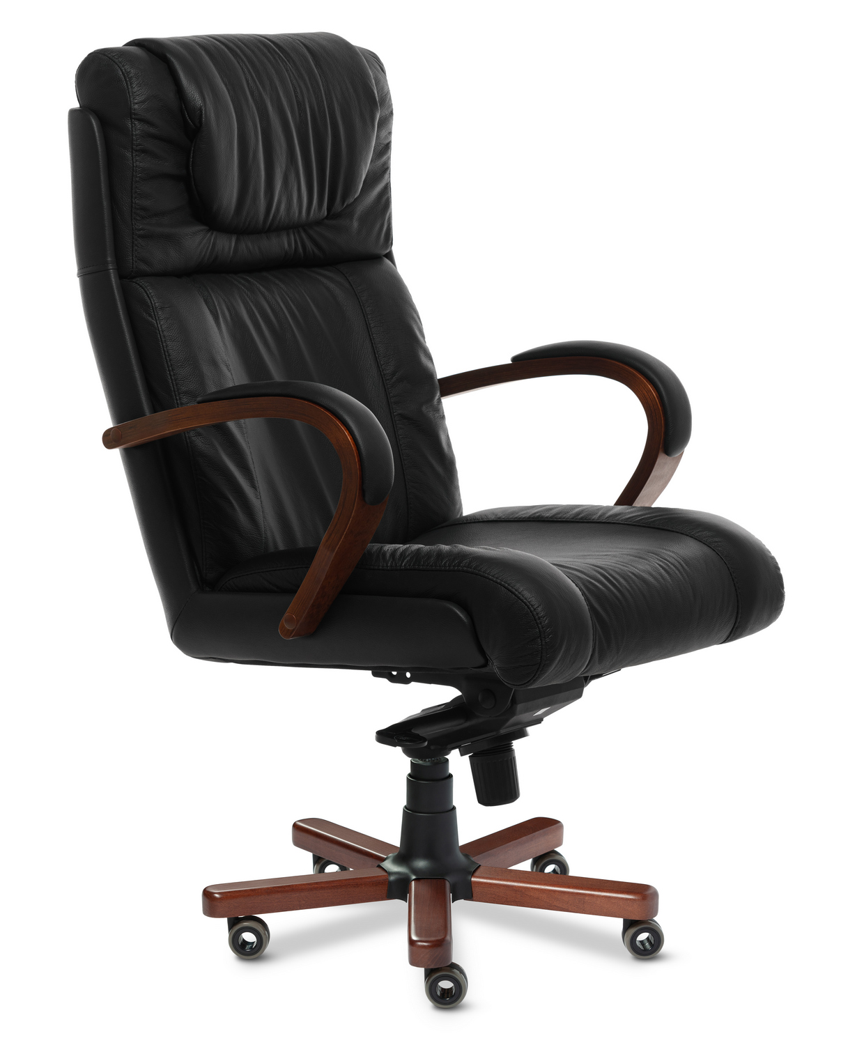 Кресло руководителя Master А - эксклюзивная модель из натуральной кожи премиум класса, выполняется с высокой спинкой и удобным подголовником, деревянными подлокотниками и деревянными накладками на крестовине, может быть выполнена в комплектации хром. Спинка и сидение уложены в фанерованный ковш, с внешней стороны обтянутый высококачественным кожзаменителем. Дизайн кресла сочетает в себе эргономичность и функциональность.