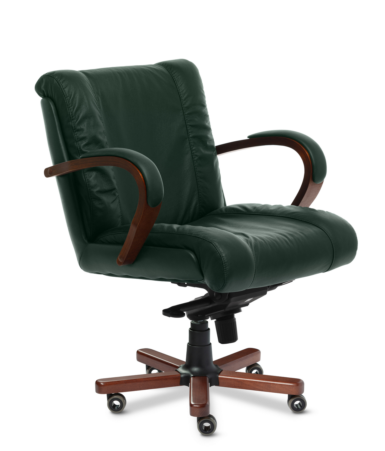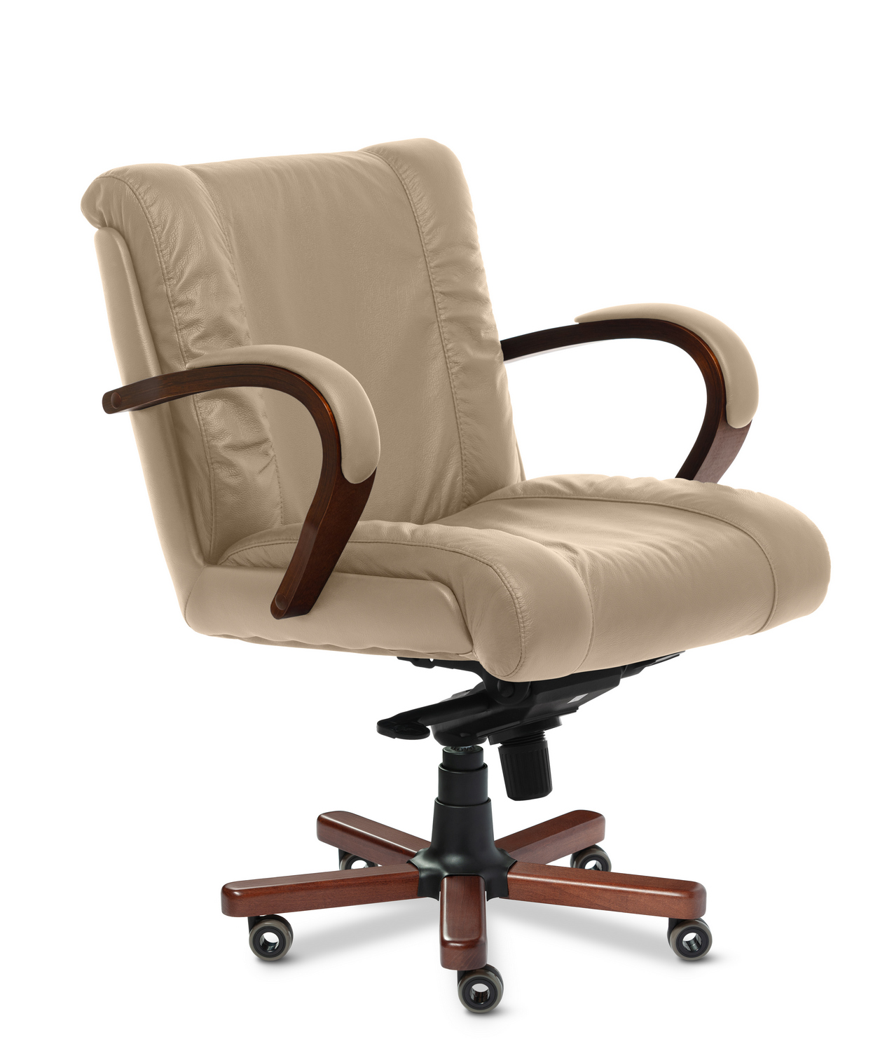 Кресло посетителя Master В - эксклюзивная модель из натуральной кожи для приёмных и переговорных зон. Выполняется с низкой спинкой, деревянными подлокотниками и деревянными накладками на крестовине, может быть выполнена в комплектации хром. Спинка и сидение уложены в фанерованный ковш, с внешней стороны обтянутый высококачественным кожзаменителем. Дизайн кресла сочетает в себе эргономичность и функциональность.