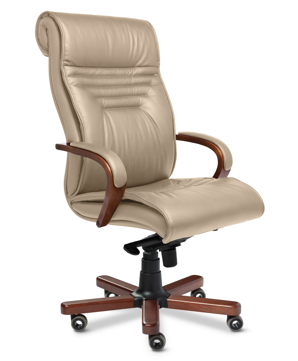 Кресло руководителя Basel А - престижная, отлично зарекомендовавшая себя в эксплуатации модель категории "Бизнес-класса", для руководящего звена. Выполняется с высокой спинкой, деревянными подлокотниками и деревянными накладками на крестовине, может быть выполнена в комплектации хром. Дизайн кресла сочетает в себе эргономичность и функциональность.