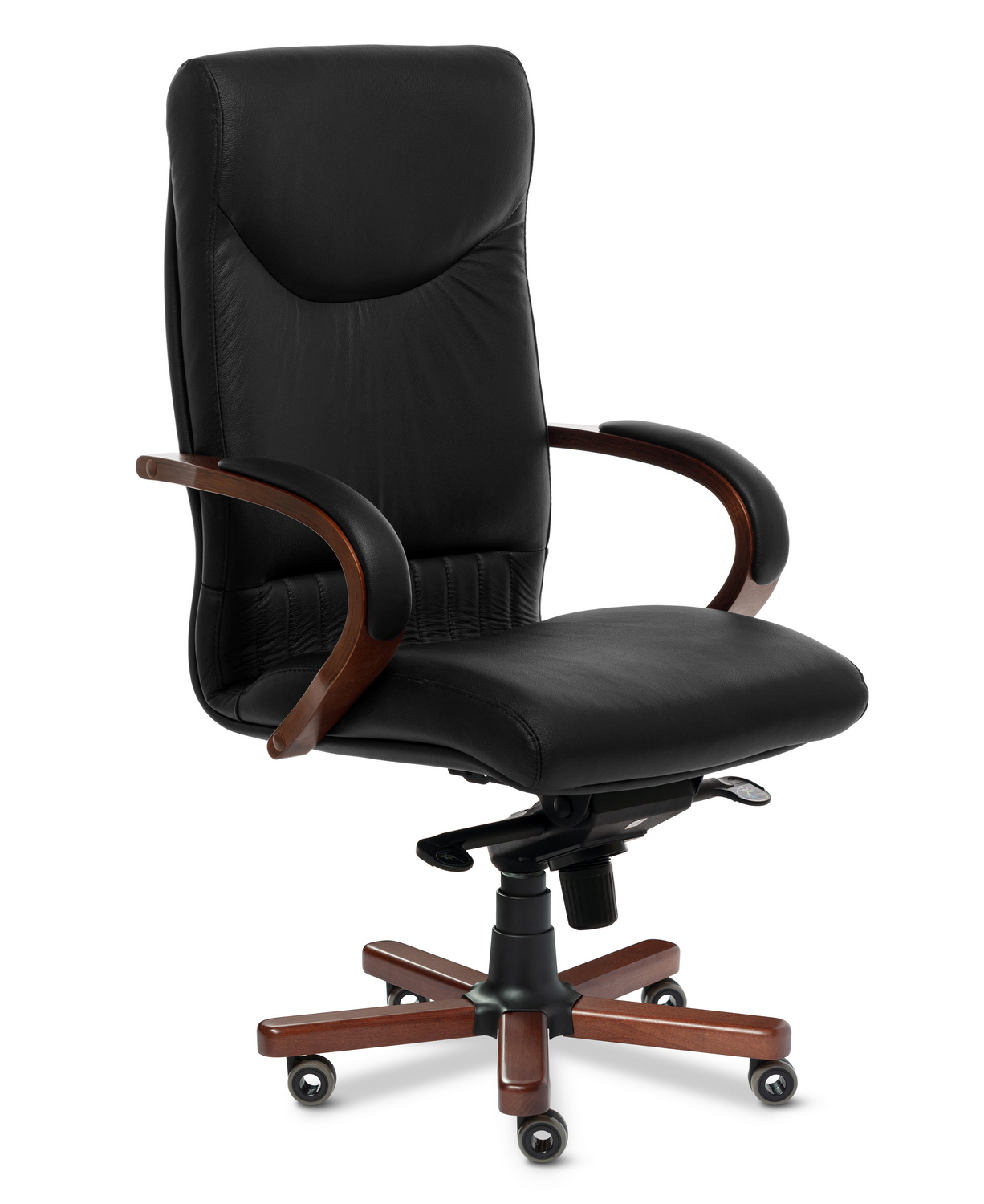Кресла модели Swing - это прекрасный выбор для наполнения офисных пространств, сочетают в себе классическую форму, практичность и приятную эргономику. Кресло руководителя Swing А - выполняется с высокой спинкой, деревянными подлокотниками и деревянными накладками на крестовине, может быть выполнено в комплектации хром. Отлично подходит для всех видов интерьеров и любой офисной обстановки.