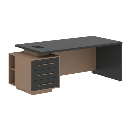 Стол руководителя с тумбой VCT 2090(L/R) Яшма черный/Бронза браш/Кобра