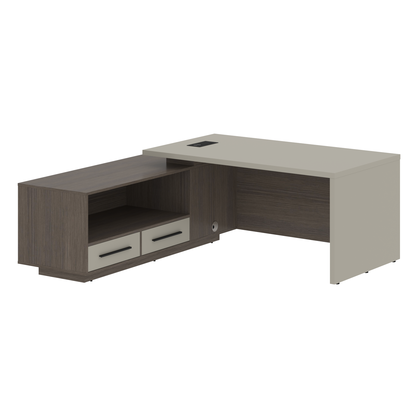 Главная / Кабинеты премиум-класса / ВЕЛИОН (VELION) / Стол руководителя с тумбой VCT 2119(L/R) Аметист/Черный матовый/Дуб Сильвер