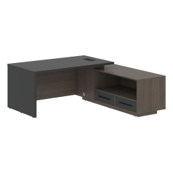 Столешница, опора выполнены из МДФ т.36мм с покрытием пленкой PET(ПЭТ), с кромками ПВХ т.2мм. Опорная тумба габаритом 1779х600х546, каркас из ЛДСП т.18мм, видимые кромки ПВХ т.1мм, фасады ящиков вкладные из МДФ т.18мм в пленке PET(ПЭТ), комплектуются ручкой с межцентровым расстоянием 320мм. Ящики-фолдинги разборные 520,5х400х100мм, направляющие - шариковые с доводчиком. Фронтальная панель стола и каркаса тумбы общая, h=548мм. Для увеличения жесткости стола под столешницей установлена металлическая траверса. В столешнице встраиваемый розеточный блок AE-PB1SAVAP-20, цвет - черный, 2 порта USB A+C, индукционная зарядка 5W с проводом 1,5 метра.