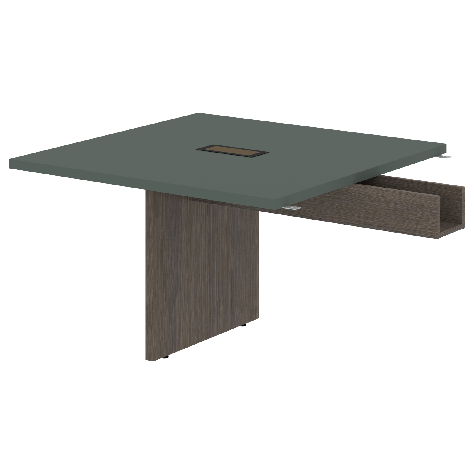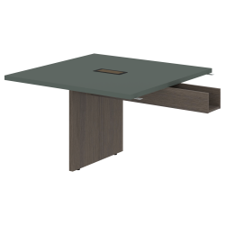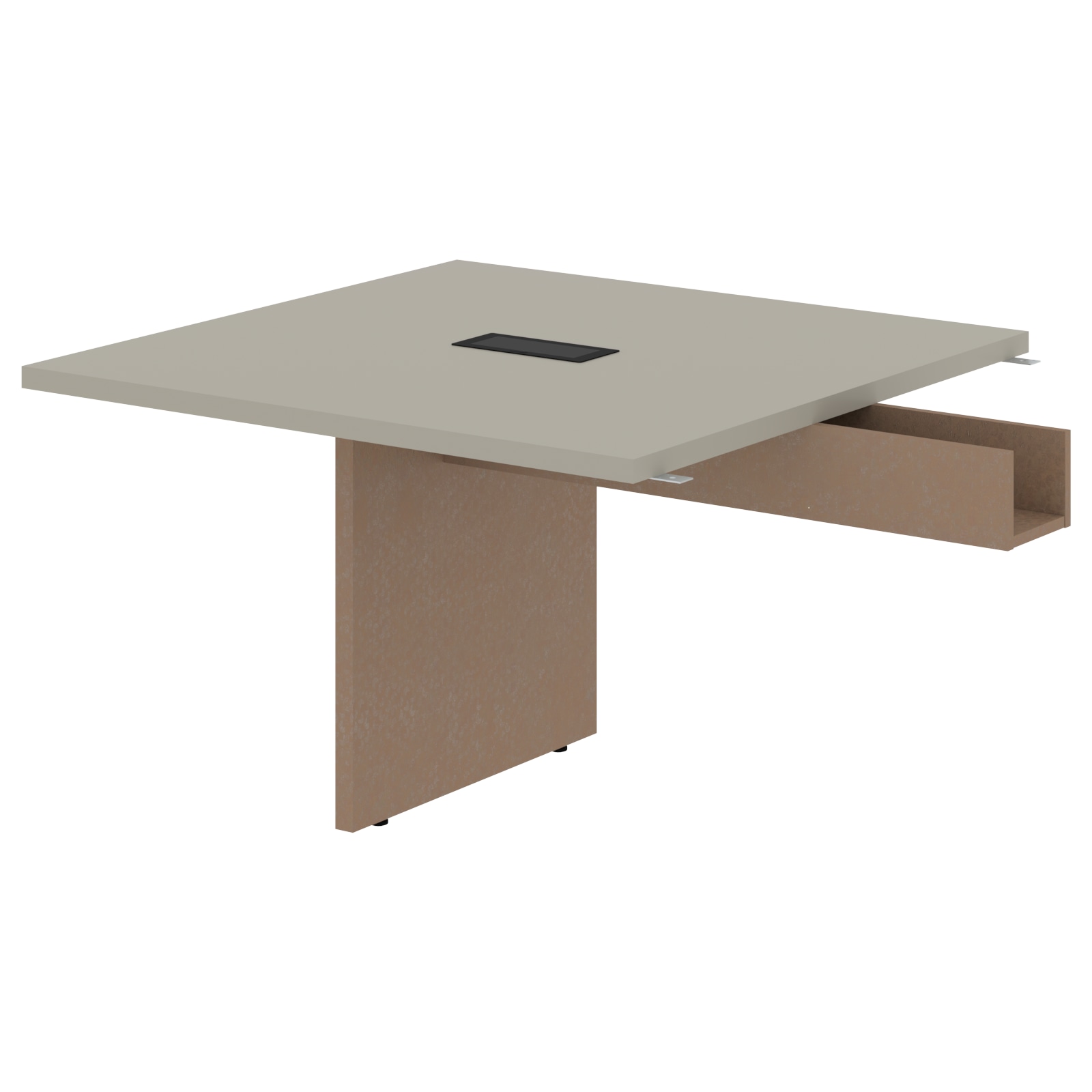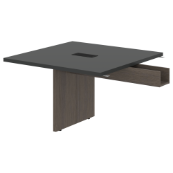 Стол приставной для комплектации переговорных столов разной длины, применяется в дополнение к центральной части. Столешница из МДФ т.36мм с покрытием пленкой PET(ПЭТ) с кромками ПВХ т.2мм по периметру. Под столешницей установлена царга в виде короба для укладки проводов, изготовленного из ЛДСП т.18мм в цвет опор. Опора из ЛДСП т.36мм с кромками ПВХ т.1мм, комплектуется регулируемыми опорами. В столешнице один встраиваемый выдвижной удлинитель NOVA габаритом 263х118х67 с 2-мя евророзетками с заземлением 220В (Schuko) и 2-мя портами USB 5В, 2.1А.
