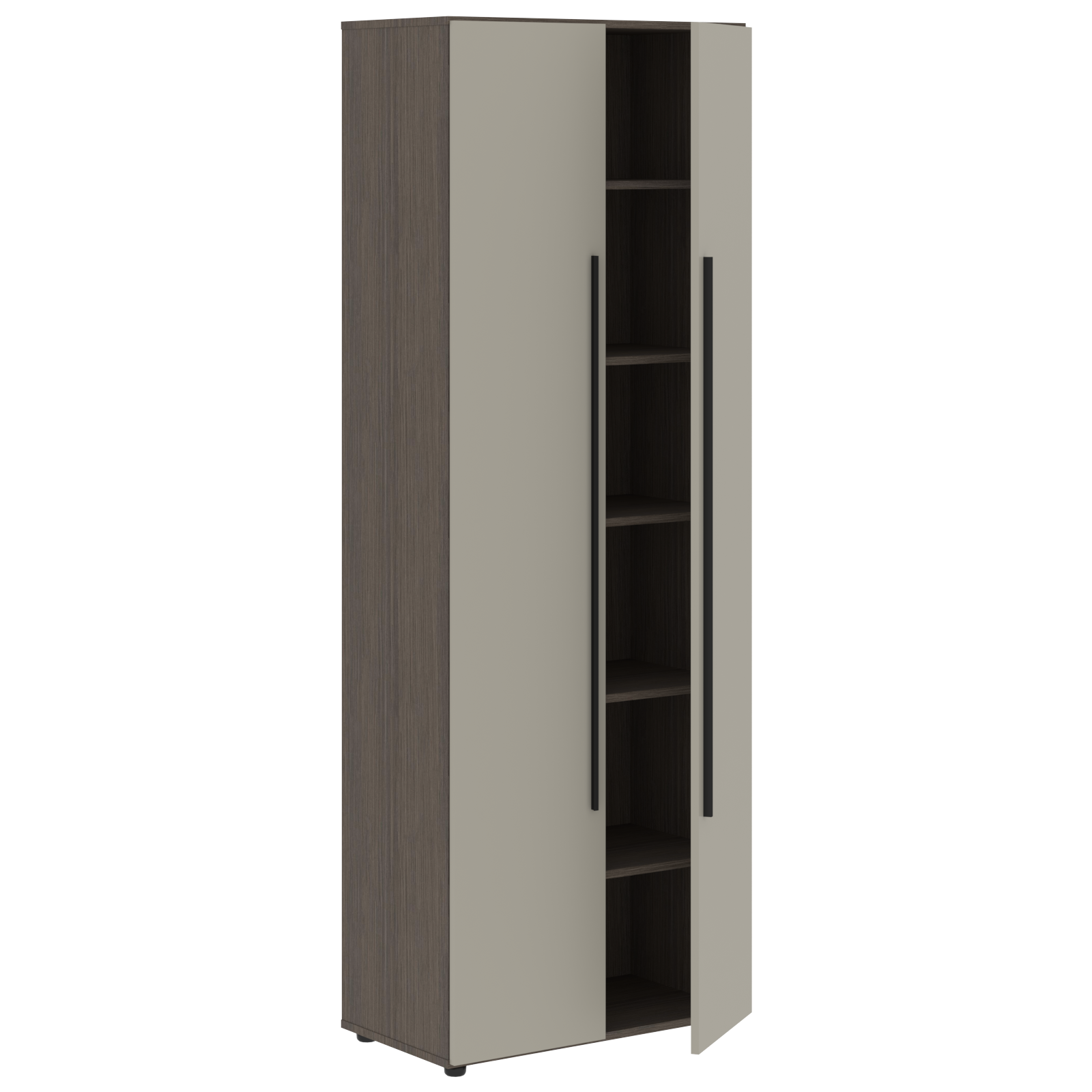 Двери высокие матовые из МДФ т.18мм с 2-х сторонним покрытием пленкой PET(ПЭТ) с кромками ПВХ т.2мм по периметру. Каждая дверь комплектуется петлями: 2-мя с доводчиком и 2-мя без доводчиков. Двери необходимо доукомплектовывать ручками VRS 8170 384-384-384/1200.