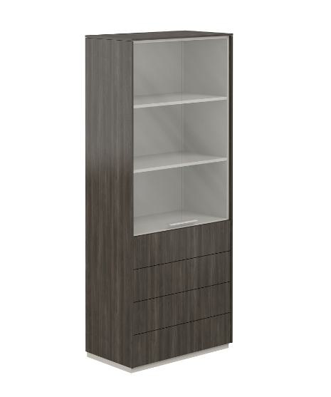 NZ-0302.BT.BT / Шкаф высокий со стеклом прозр., 4 ящ., обвязка BT, фасады BT / 824х450х1976, обвязка BT, фасады BT, стекло прозрачное GL