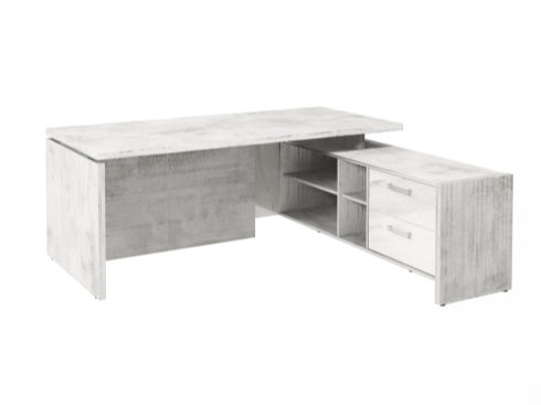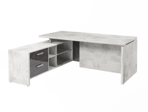 Столешница, бок стола и бок тумбы выполнены из ЛДСП толщиной 38 мм. Цвет - "Хромикс белый". Кромка 2 мм.