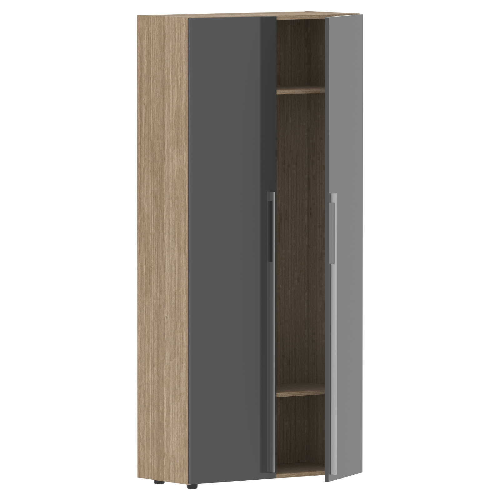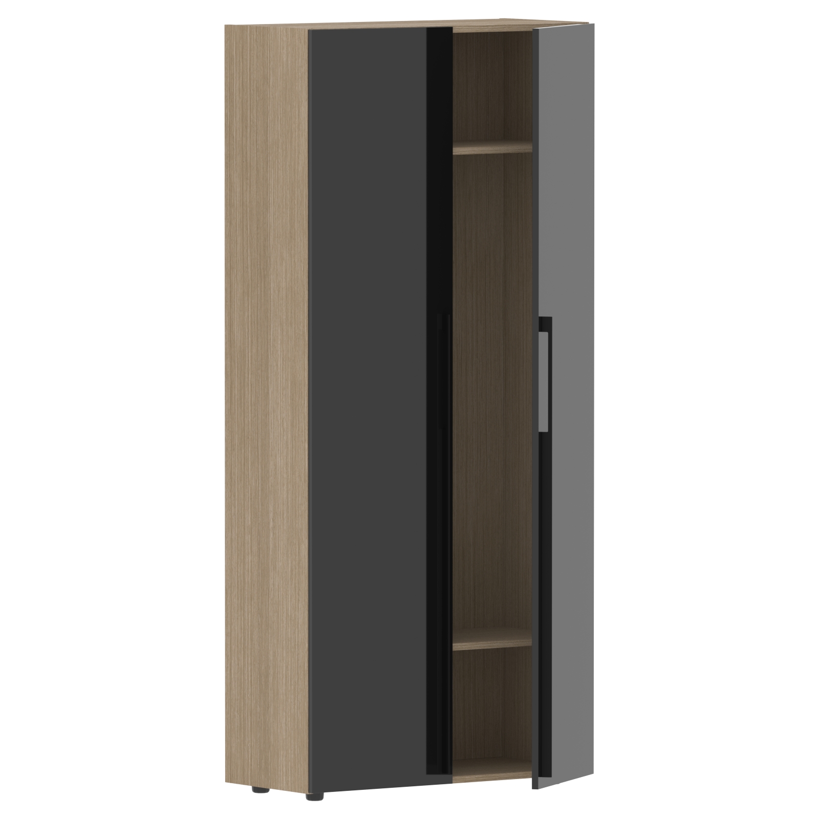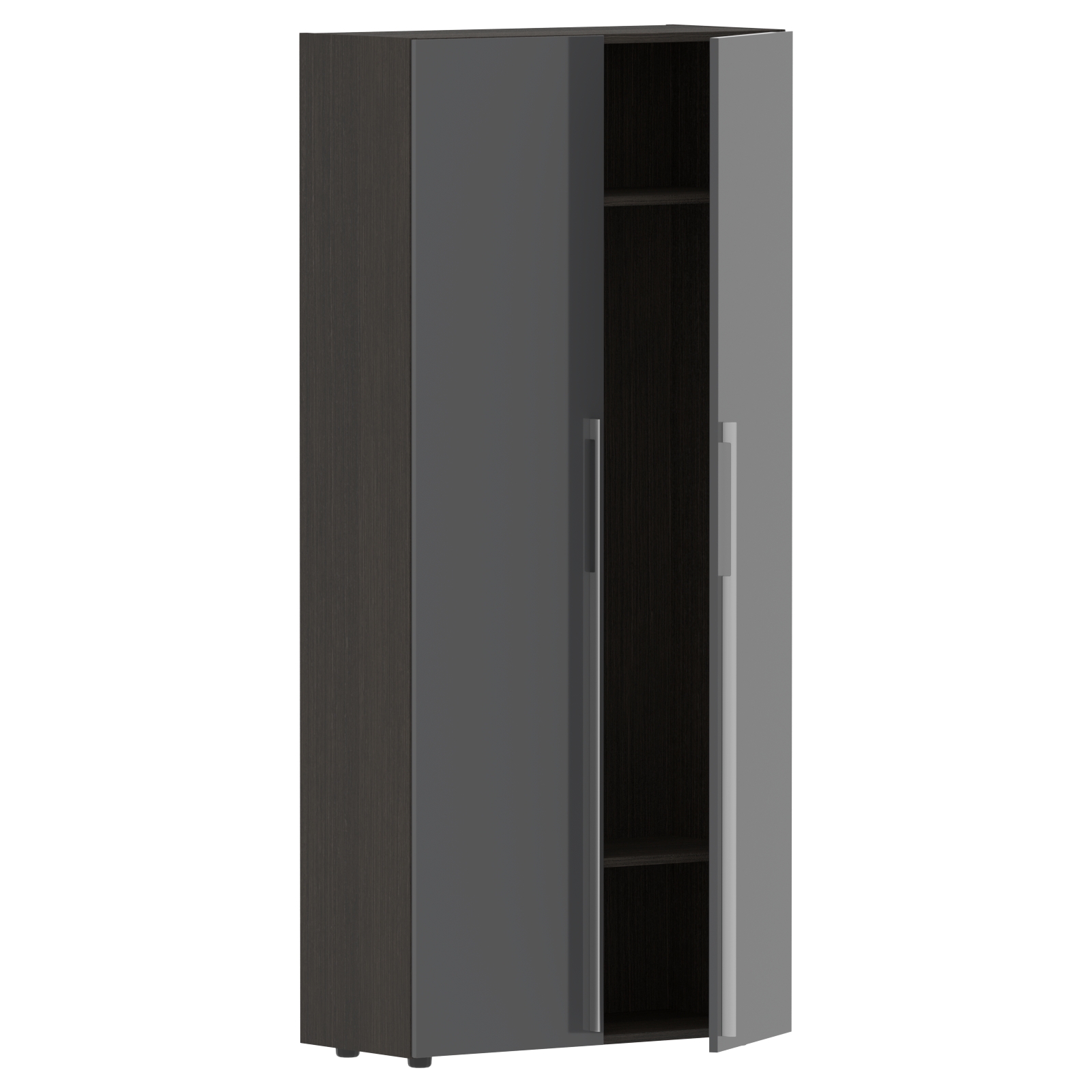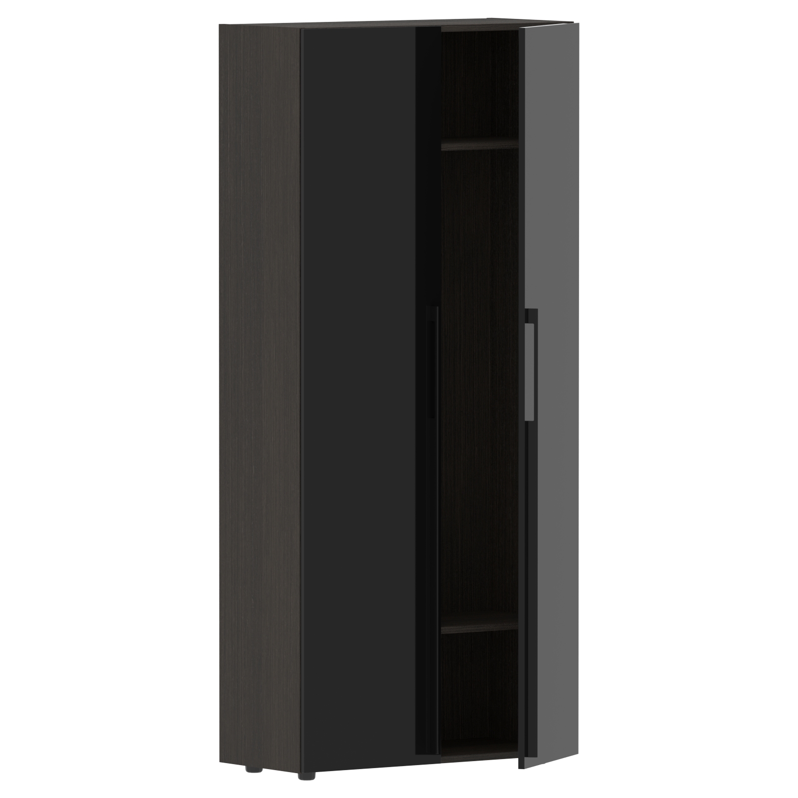 Каркас из МДФ т.18 мм, облицован шпоном с защитно-декоративным покрытием. Полки из ЛДСП т.18мм, торцевые поверхности защищены кромкой ПВХ т.1мм в цвет. Фасады из МДФ т.18мм с защитно-декоративным покрытием "высокий глянец".