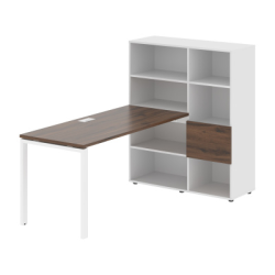 Столешница глубиной 670мм, комплектуется регулируемой опорой П-образной формы из профиля трубы 60х30, комплектом телескопических траверс и двумя кронштейнами для крепления к стеллажу. Каркасы стеллажей полностью из ЛДСП т.18мм с кромками ПВХ т.2 и 0,45мм, задняя стенка из ЛДСП. Комплектуется малой дверью в цвет столешницы и регулируемыми опорами h= 27мм.