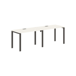 Столешницы из ЛДСП т.25мм с кромками ПВХ по периметру т.2мм. Комплектуются металлическими кабель-каналом габаритом 160х80х25мм, в цветах - Мокко, Черный, Белый. Металлокаркас из профиля трубы 60х30, рамы П-образной формы торцевые и промежуточные комплектуются регулируемыми опорами и комплектом телескопических траверс. Толщина металла рам 1,5мм, толщина металла траверс 1,5мм. Профиль трубы наружный 40х20мм, внутренний 30х15мм