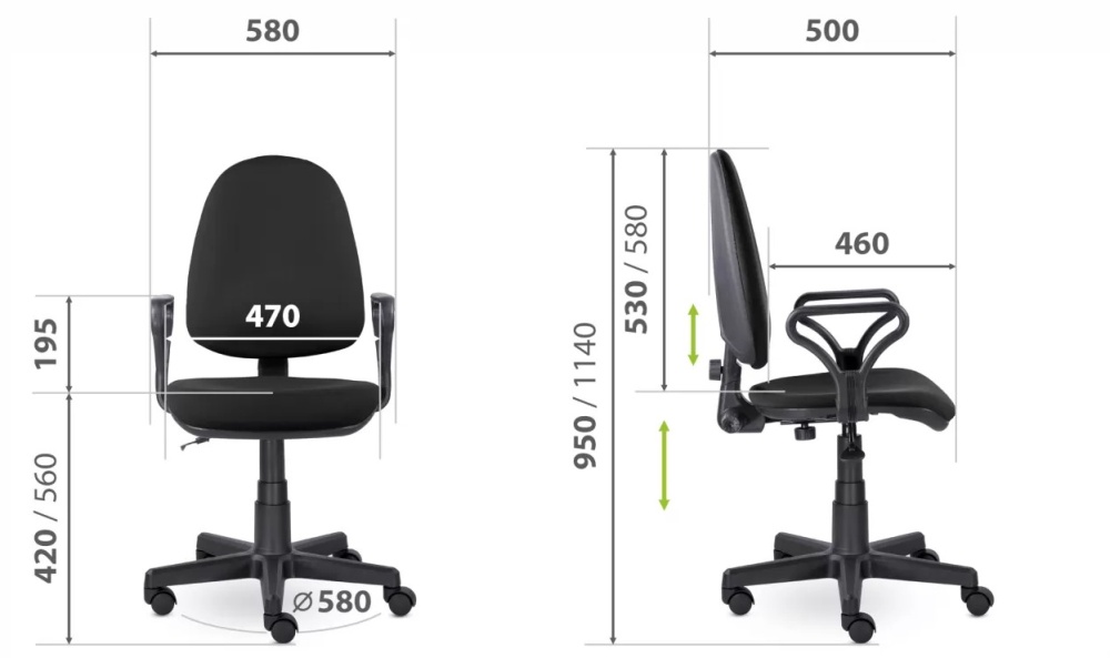 Кресло имеет высокую эргономичную спинку и сиденье с увеличенной мягкой подушкой. Удобные пластиковые подлокотники и механизм, благодаря которому можно регулировать угол наклона, высоту спинки и глубину сиденья.