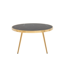 Журнальный столик Гелиос 80х80, стекло черный мрамор, ножки сталь золото