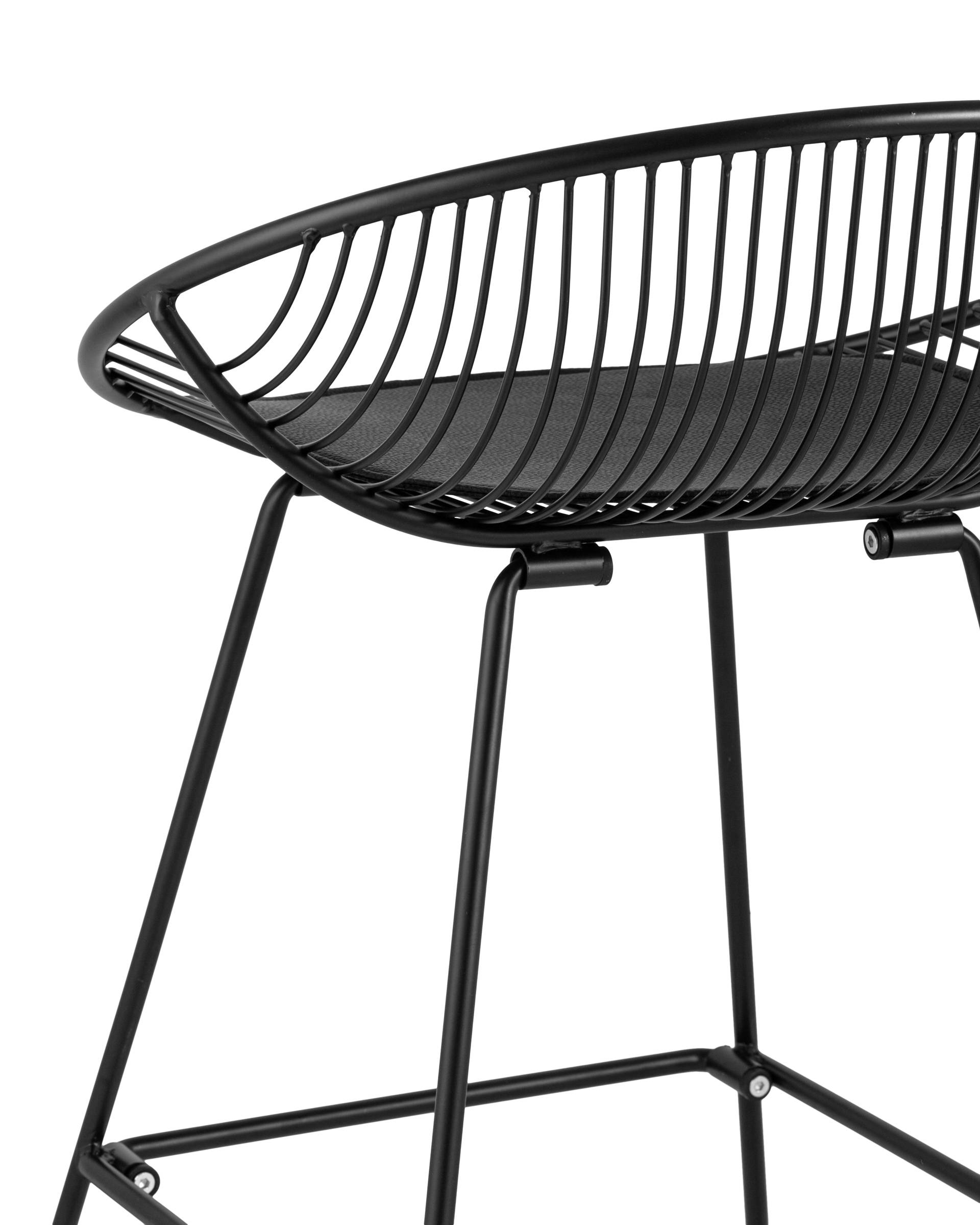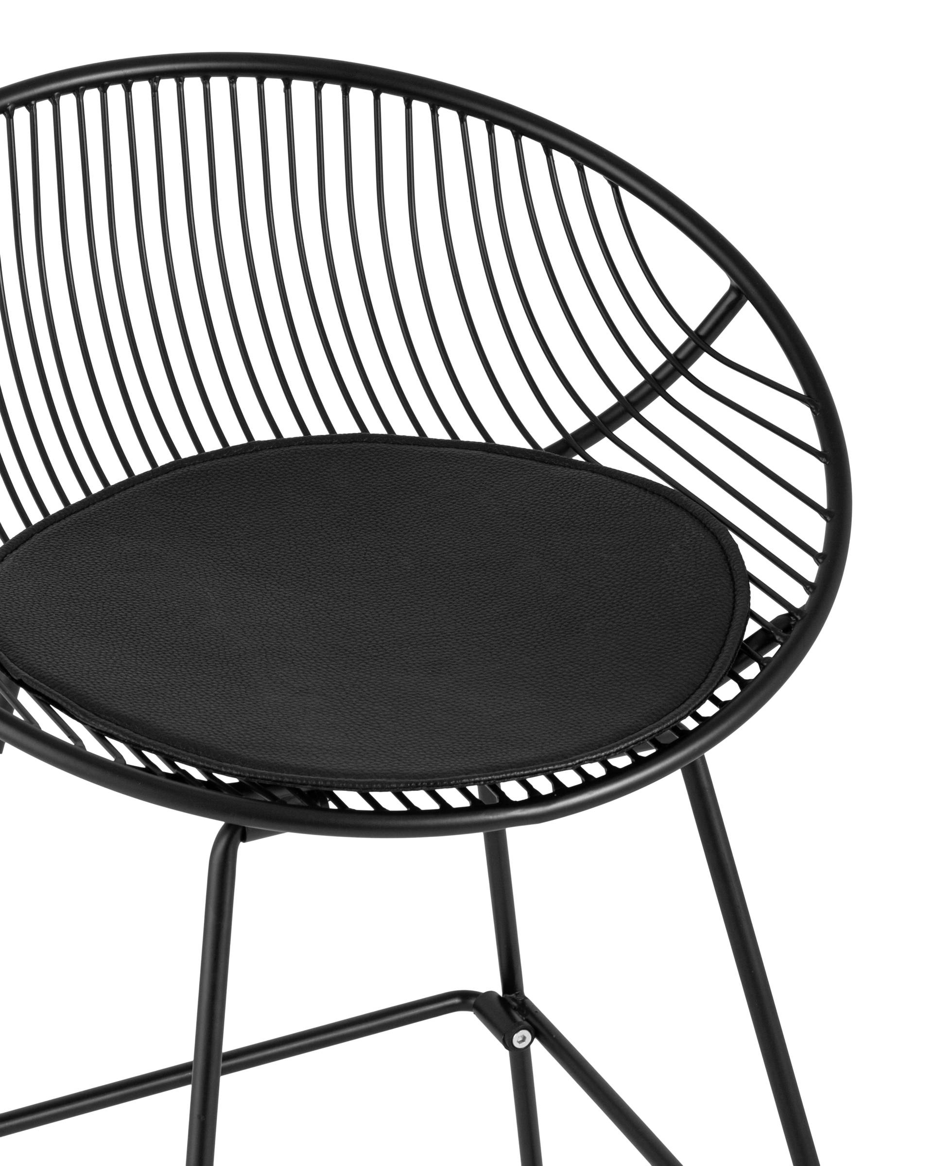 Стул барный UFO черный металл с черной подушкой из экокожи