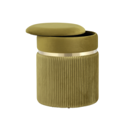 Пуф Миранда с ящиком велюр оливковый с декоративным золотым ободком