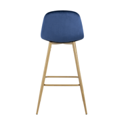 Стул барный Валенсия синий обивка из велюра ножки из металла стилизованные под дерево с подножкой