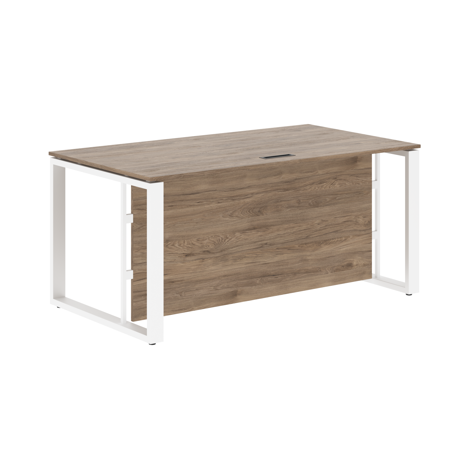 Две траверсы металлические крашенные из профиля трубы 40х25х2мм. Стол комплектуется высокой фронтальной панелью из ЛДСП т.18мм, h= 646мм с кромкой ПВХ т. 0,45мм.