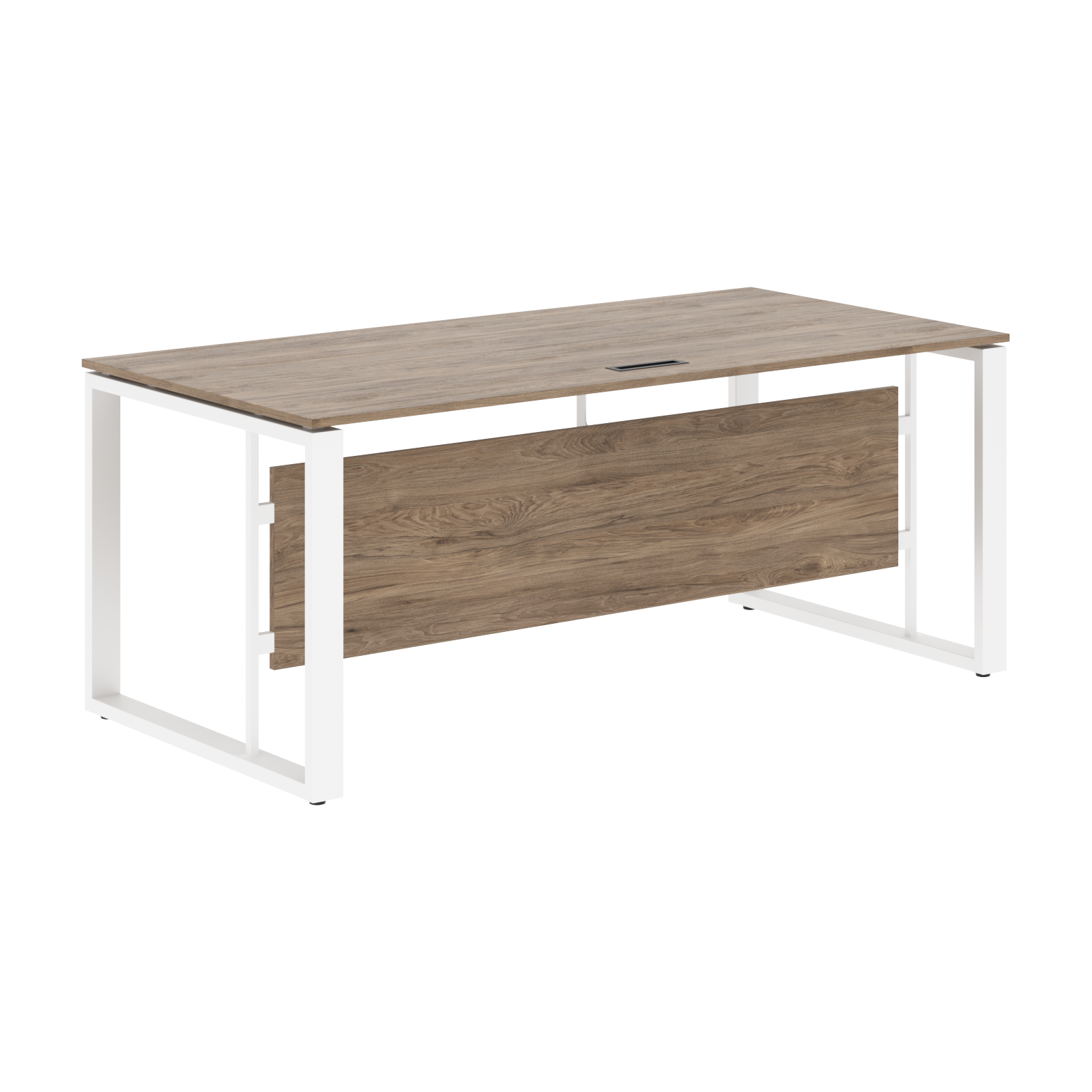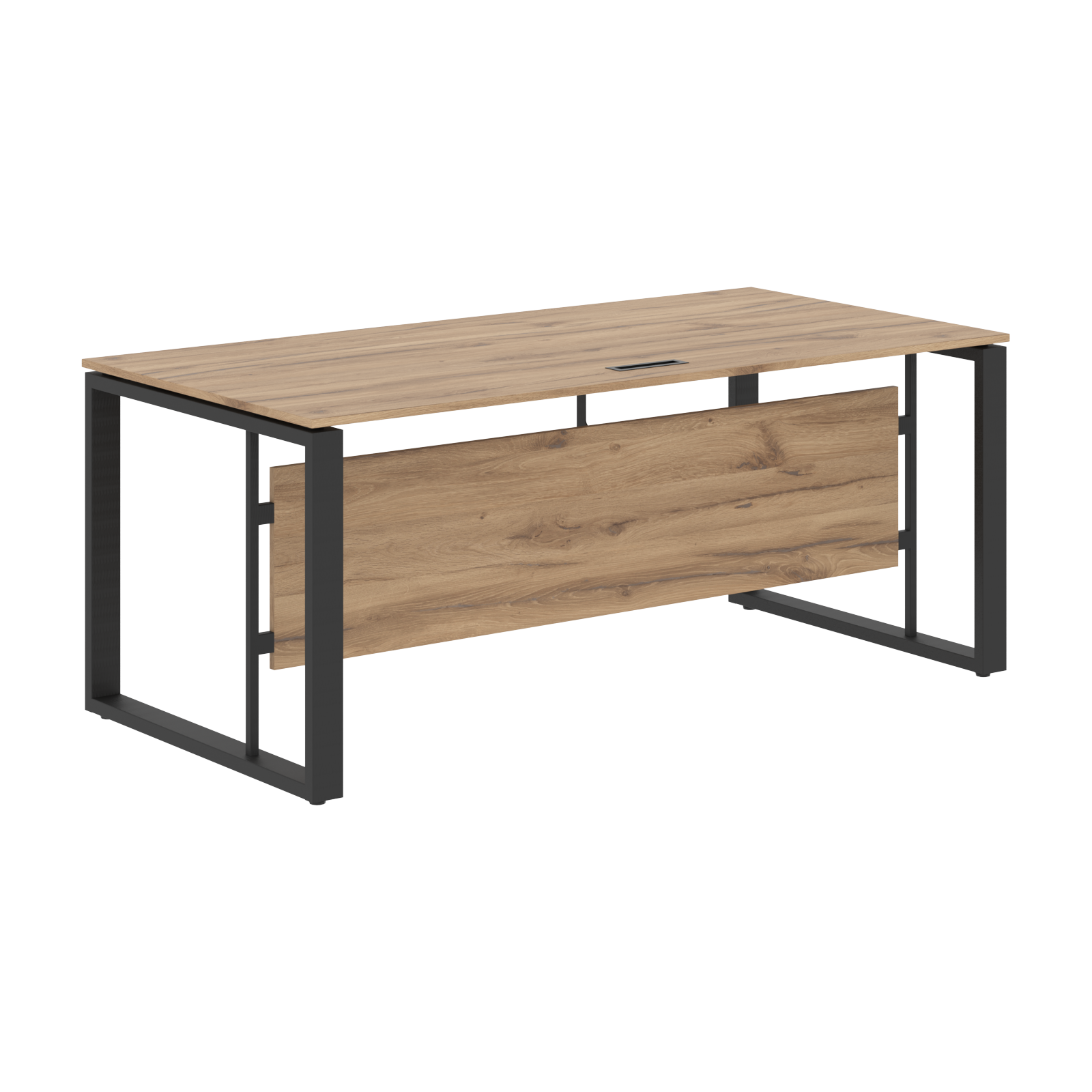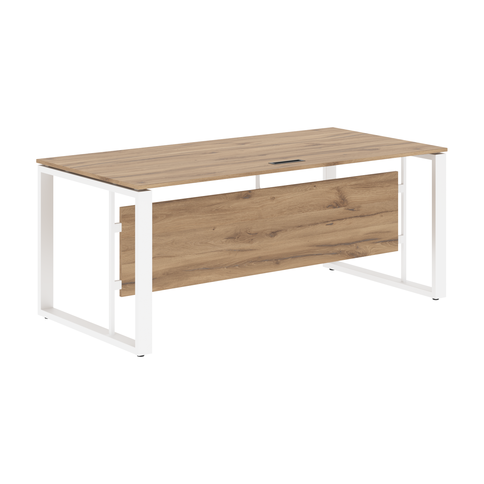 Две траверсы металлические крашенные из профиля трубы 40х25х2мм. Стол комплектуется короткой фронтальной панелью из ЛДСП т.18мм, h=400мм с кромкой ПВХ т.0,45мм.