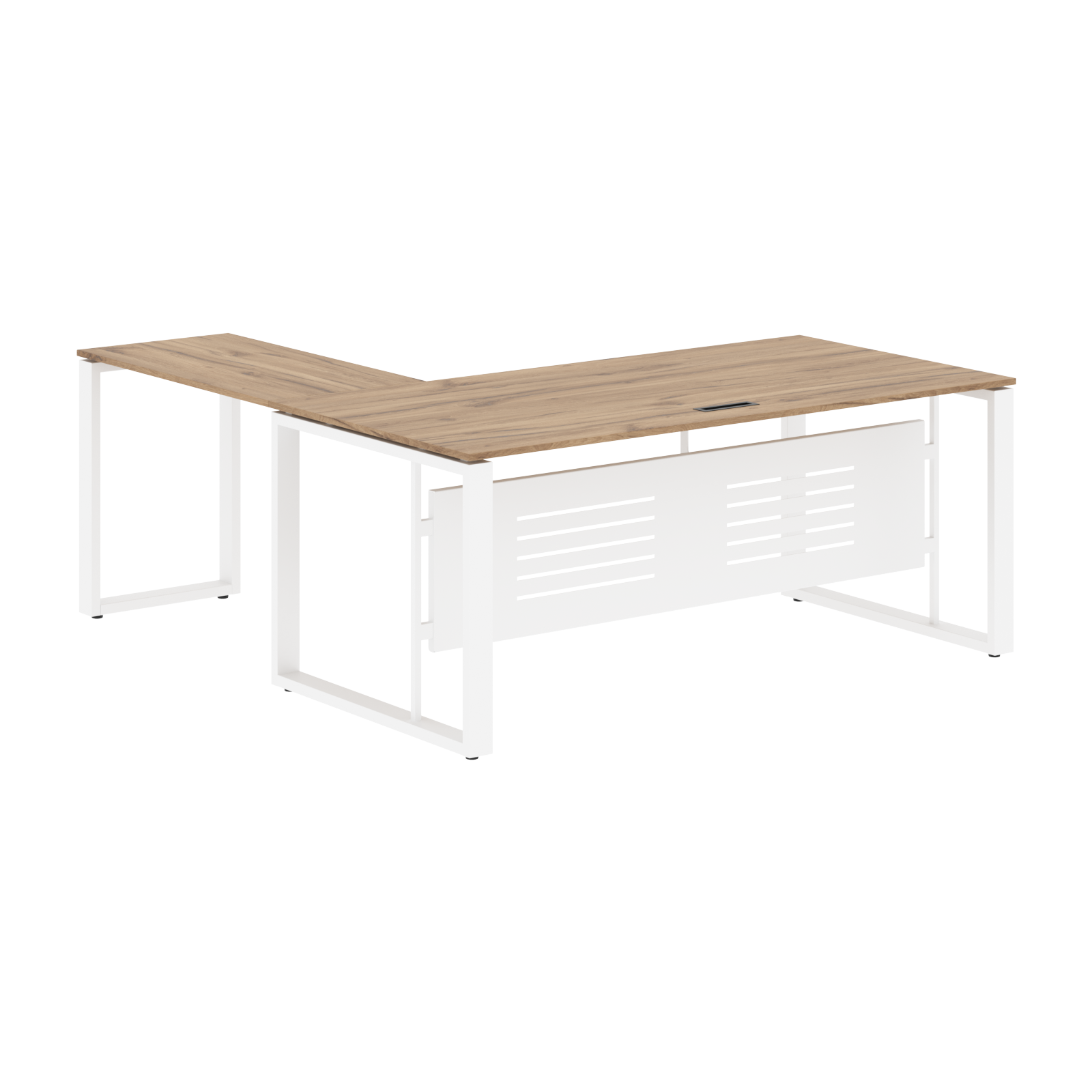 Стол комплектуется короткой фронтальной панелью из металлического листа толщиной 1,5мм с перфорацией, h=400мм.