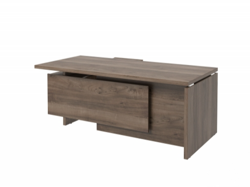 Столешница, бок стола и бок тумбы выполнены из ЛДСП толщиной 38 мм. Цвет - "Орех Пацифик Табак". Кромка 2 мм.