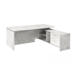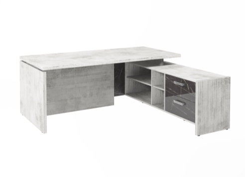 Столешница, бок стола и бок тумбы выполнены из ЛДСП толщиной 38 мм. Цвет - "Хромикс белый". Кромка 2 мм.