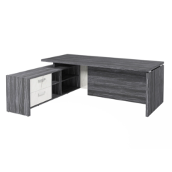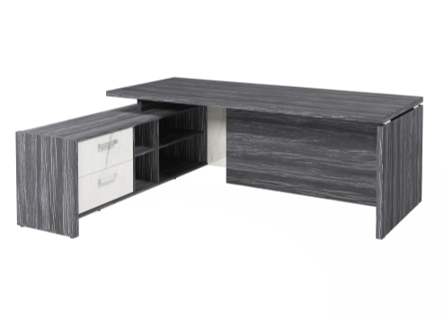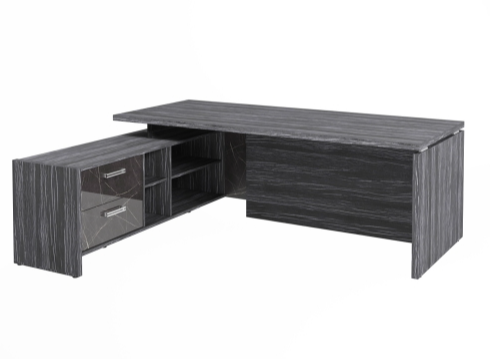 Столешница, бок стола и бок тумбы выполнены из ЛДСП толщиной 38 мм. Цвет - "Древесина Графит". Кромка 2 мм.