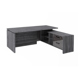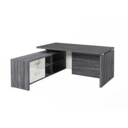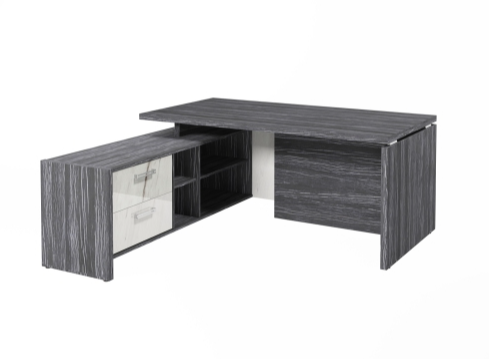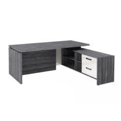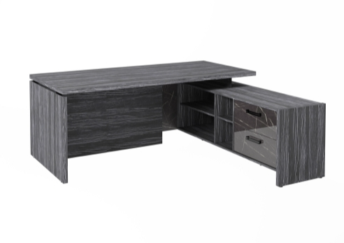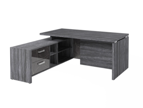 Столешница, бок стола и бок тумбы выполнены из ЛДСП толщиной 38 мм. Цвет - "Древесина Графит". Кромка 2 мм.