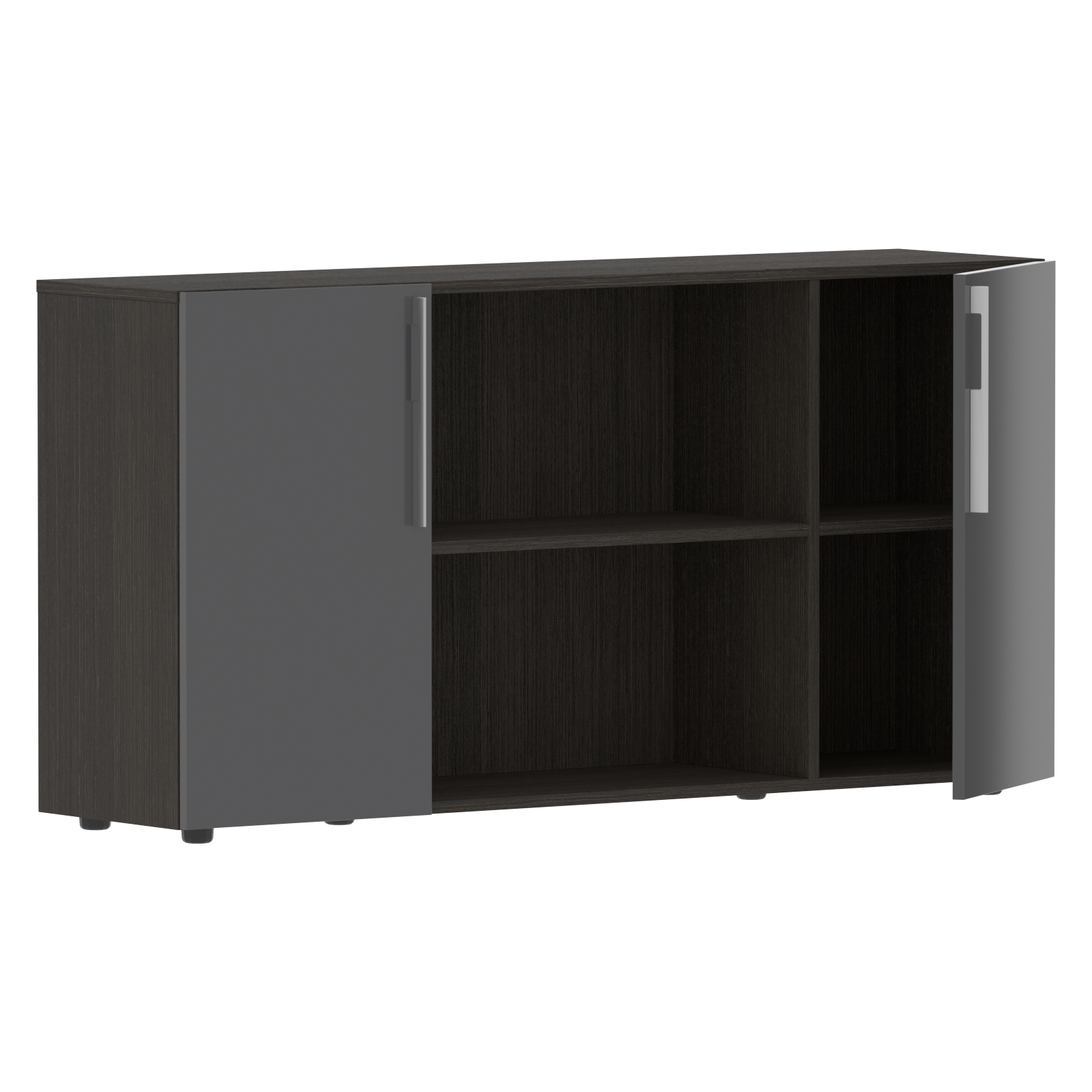 Каркас и видимые полки из МДФ т.18 мм, облицованы шпоном с защитно-декоративным покрытием. Полки невидимые из ЛДСП т.18 мм, торцевые поверхности защищены кромкой ПВХ т.1мм в цвет. Фасады из МДФ т.18мм с защитно-декоративным покрытием "высокий глянец". Комплектуется накладными петлями с доводчиком. Ручки металлические ORION 320/340. Опоры регулируемые.